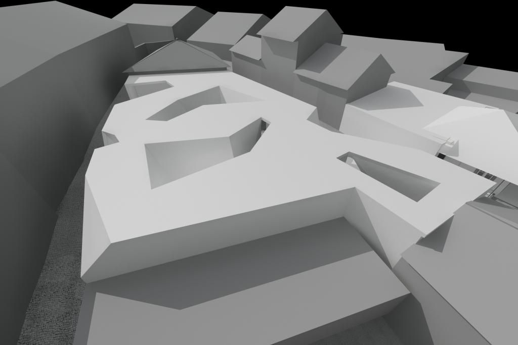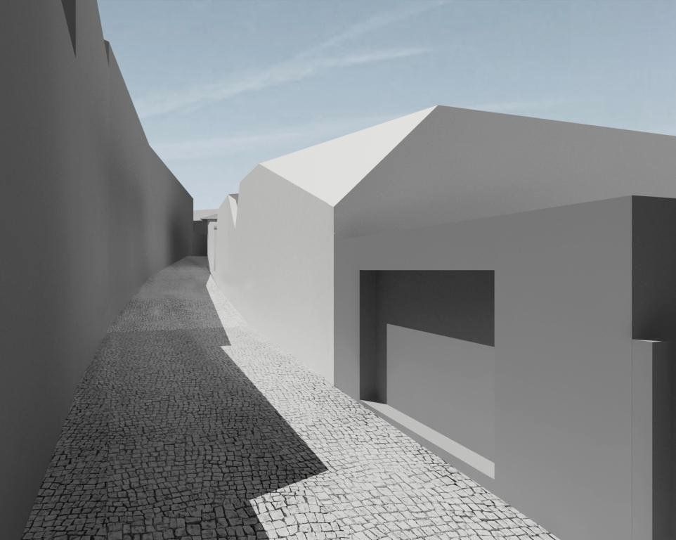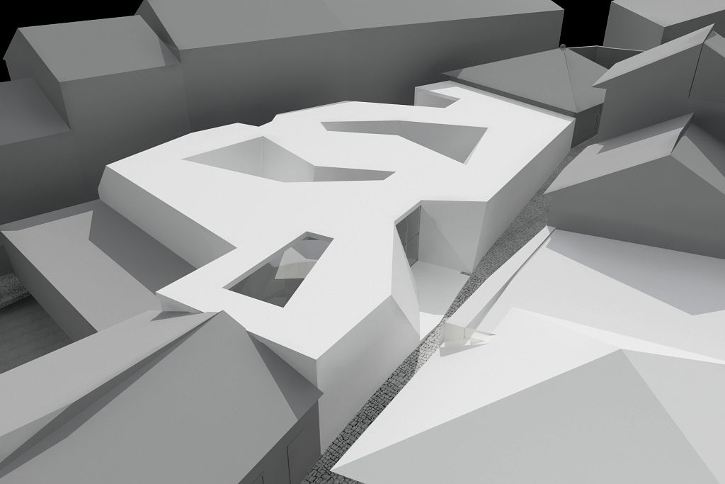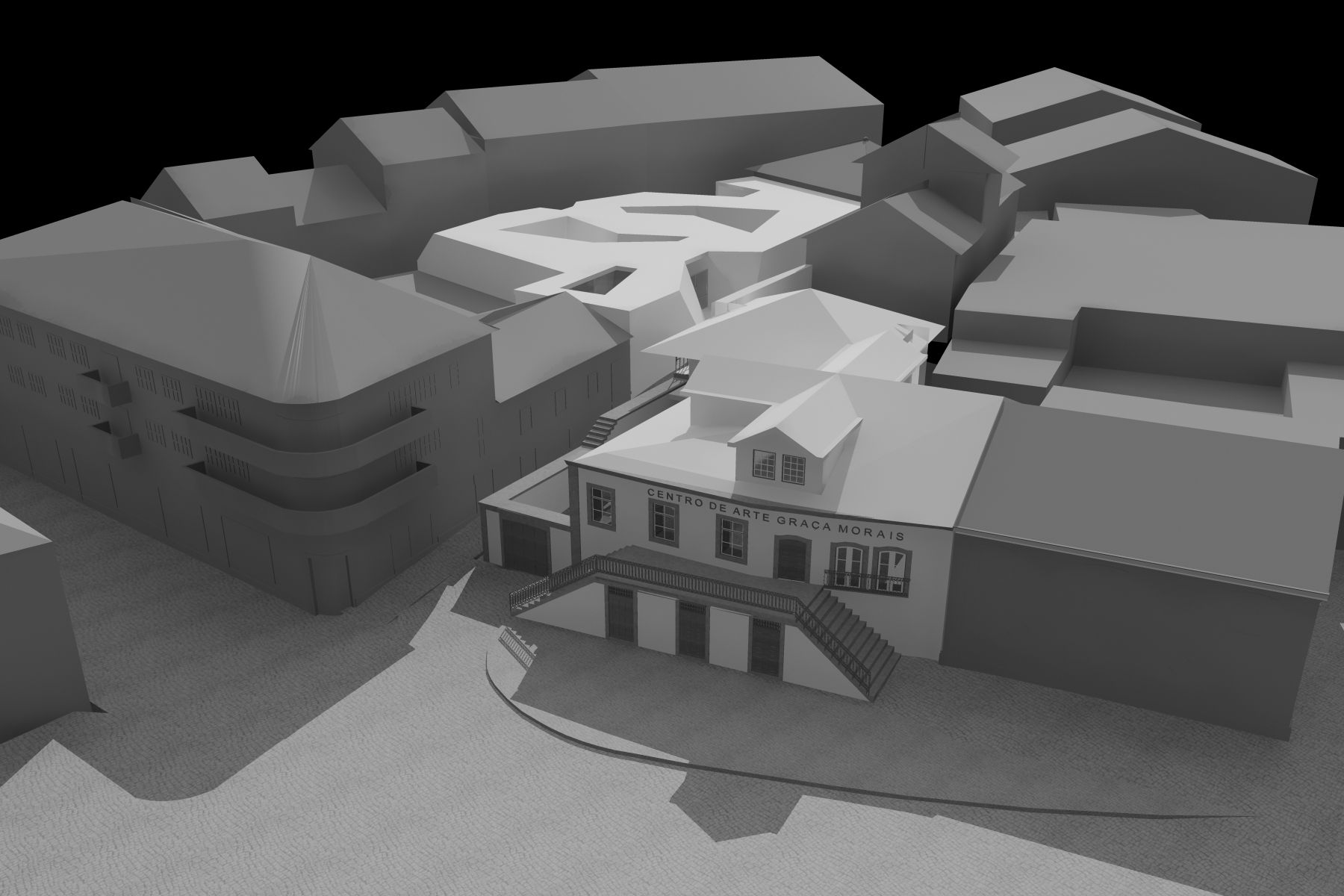 Projeto realizado no âmbito de um concurso público promovido pela Câmara Municipal de Vila Flor e pela Ordem dos Arqui tectos, para a construção do espaço cultural “ENCONTRO DAS ARTES | ESPAÇO GRAÇA MORAIS, “que integrará várias funcionalidades de divulgação das artes, da cultura e da expressão artística tendo por temática a obra da pintora Graça Morais.” “Muitos dos rostos que desenho pertencem a mulheres marcadas, que já viveram muito e nunca trataram a pele com cre mes. Essa relação com o tempo fascina-me: lê-lo na cara dos outros, no olhar e nas rugas, como quem descobre a idade das árvores nas suas cascas. Uma cara aos 60 anos, esticada por um cirurgião plástico, fica sem passado.” Graça Morais Acontece o mesmo com os edifícios. A recuperação do edifício pré-existente, na procura da salvaguarda e transmissão de uma herança patrimonial, fará coexistir trabalhos de restauro (reparações com os mesmos métodos construtivos e materiais da construção), com trabalhos de reabilitação, compatibilizando os elementos existentes com materiais e tecnologias atuais e com a introdução de novos equipamentos e infraestruturas. Por outro lado, na parcela de terreno contígua, é proposto um edifício de linguagem autónoma e contemporânea que, por questões de resposta ao programa pretendido, ocupa a totalidade do terreno e procura relações volumétricas de diálogo com as construções adjacentes; é uma construção austera, de relações claras com a envolvente: em cada uma das ruas, as suas fachadas em betão branco, texturado, de altura máxima de dois pisos, apresentam as aberturas consideradas indispensá veis (uma entrada na Rua Miguel Corte-Real e outra, para cargas e descargas, na Rua de S. Martinho). A presente proposta deu atenção particular à organização espacial interior, adequando novos usos aos espaços existentes e, no edifício de raiz, concebendo novos espaços para os usos requeridos, conferindo-lhes novos significados. No seu interior, os espaços projetados envolvem três pátios que lhes devolvem a luz; são espaços que remetem para a forma arquitetónica do Centro das Artes | Graça Morais as vocações do seu programa (exposição/criação). O conjunto resulta assim de um diálogo entre uma pré-existência que se requalifica e um edifício unitário face à envolvente, com mil caras no seu interior.