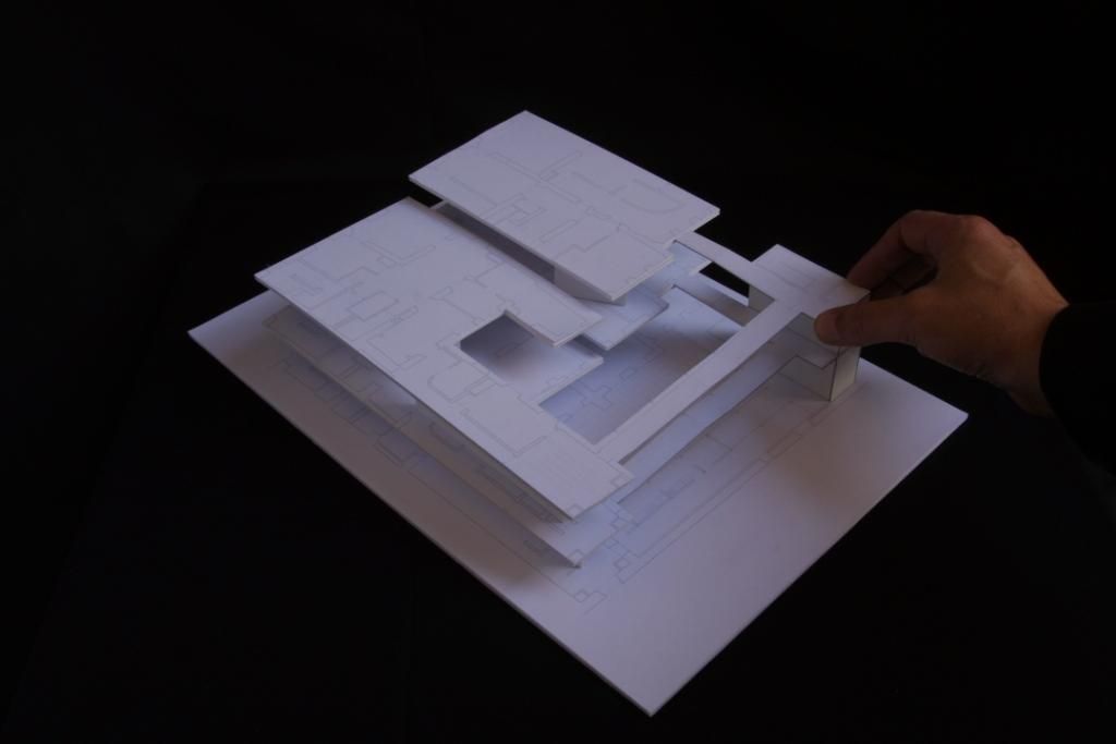 Desse núcleo surgirão as rampas que permitirão percursos acessíveis a todos os pisos do imóvel, qualificando os espaços exteriores existentes e relacionando-se com as preexistências; no presente caso, o pátio existente manterá a sua escala e unidade, dado que o sistema de rampas/escadas/ascensor se implantará nos limites do terreno, substituindo parte das construções anexas.