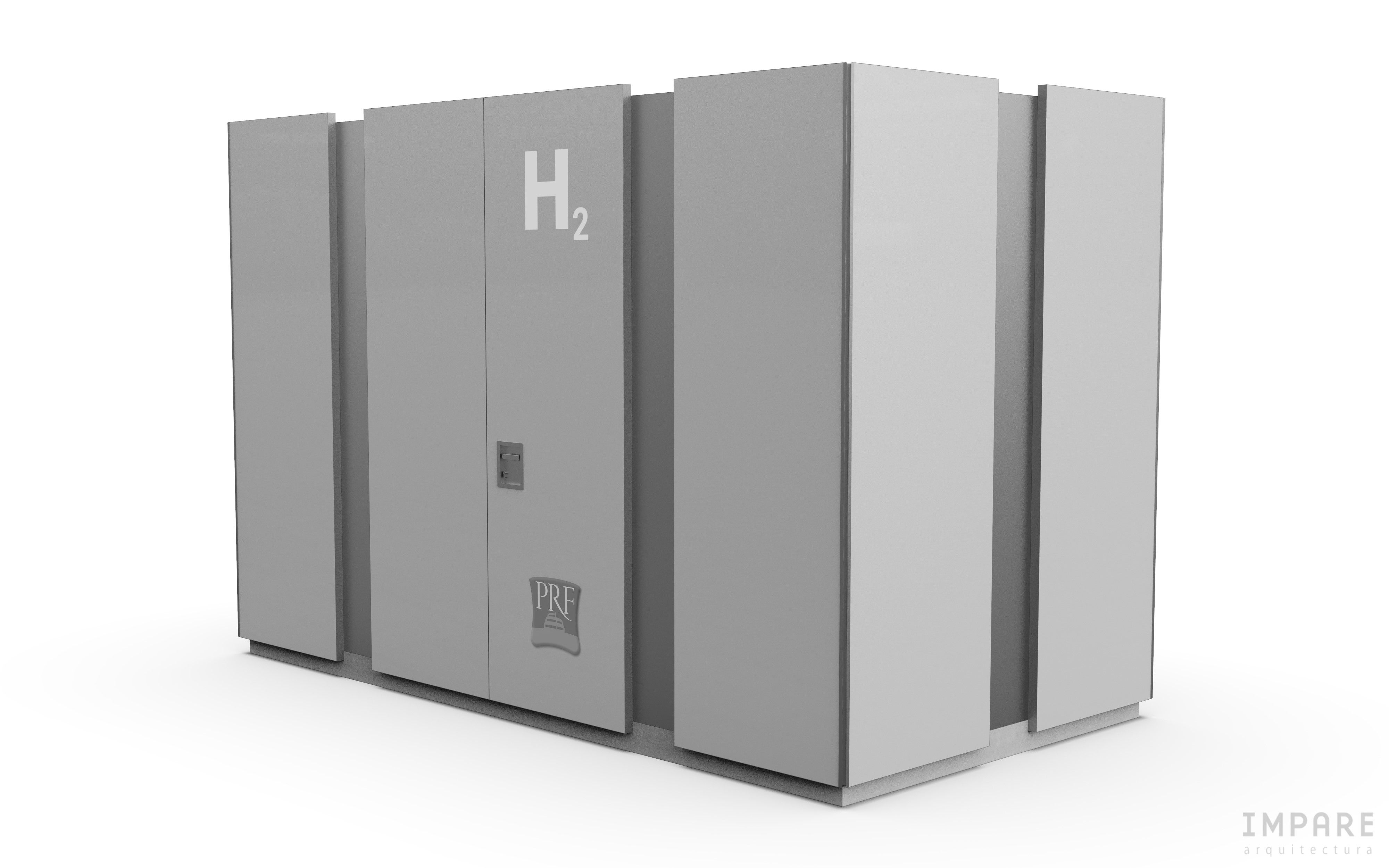 PRF Gas Solutions, a cutting-edge company in the field of fuel gases, with whom Impare Arquitectura has had the privilege of working on several projects, including its headquarters, participated in the design of the DRHYVE project, for a portable hydrogen refueling station, a pioneer in Portugal, for refueling vehicles powered by hydrogen fuel cells.