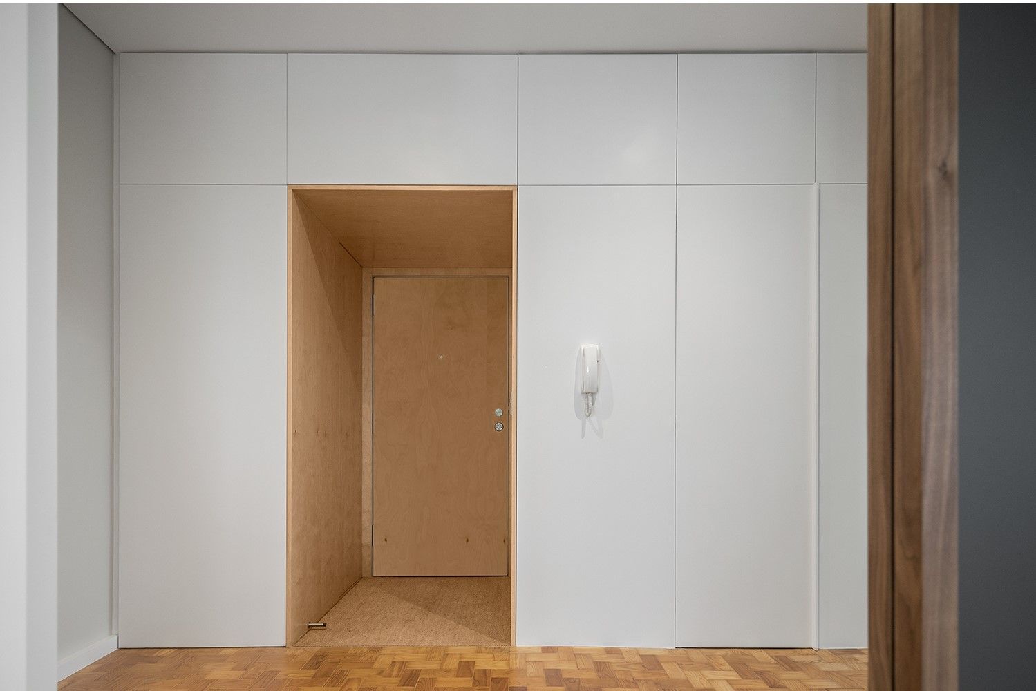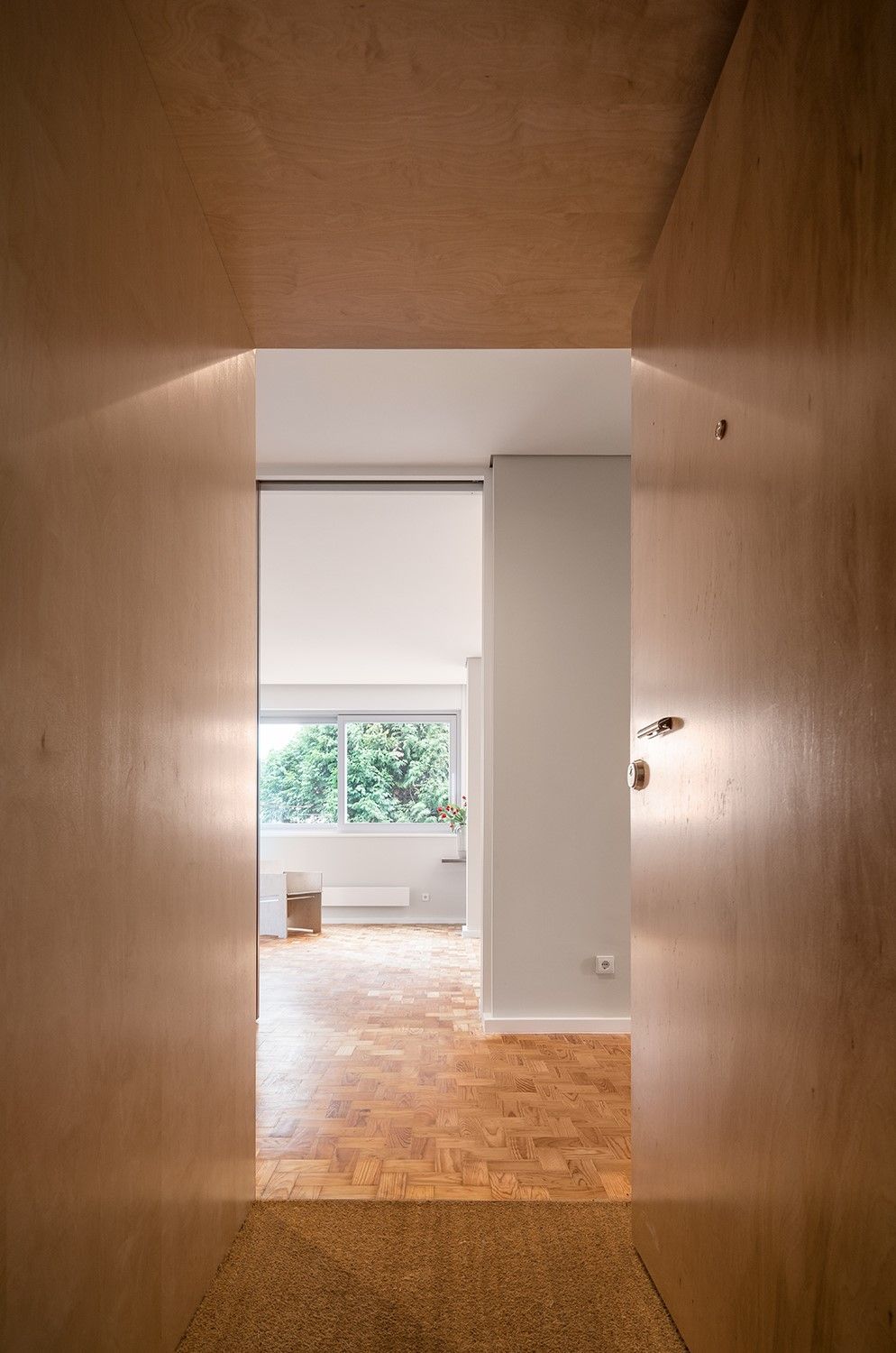 A intervenção teve como objetivo adaptar o apartamento às exigências atuais de conforto e funcionalidade, respeitando a essência do projeto original. A principal alteração consistiu na ligação entre o vestíbulo e a antecâmara da área de serviço, criando uma entrada mais ampla. Um dos quartos foi integrado na sala comum, permitindo a criação de uma zona de trabalho e mais arrumação. A despensa foi removida para ampliar a cozinha.