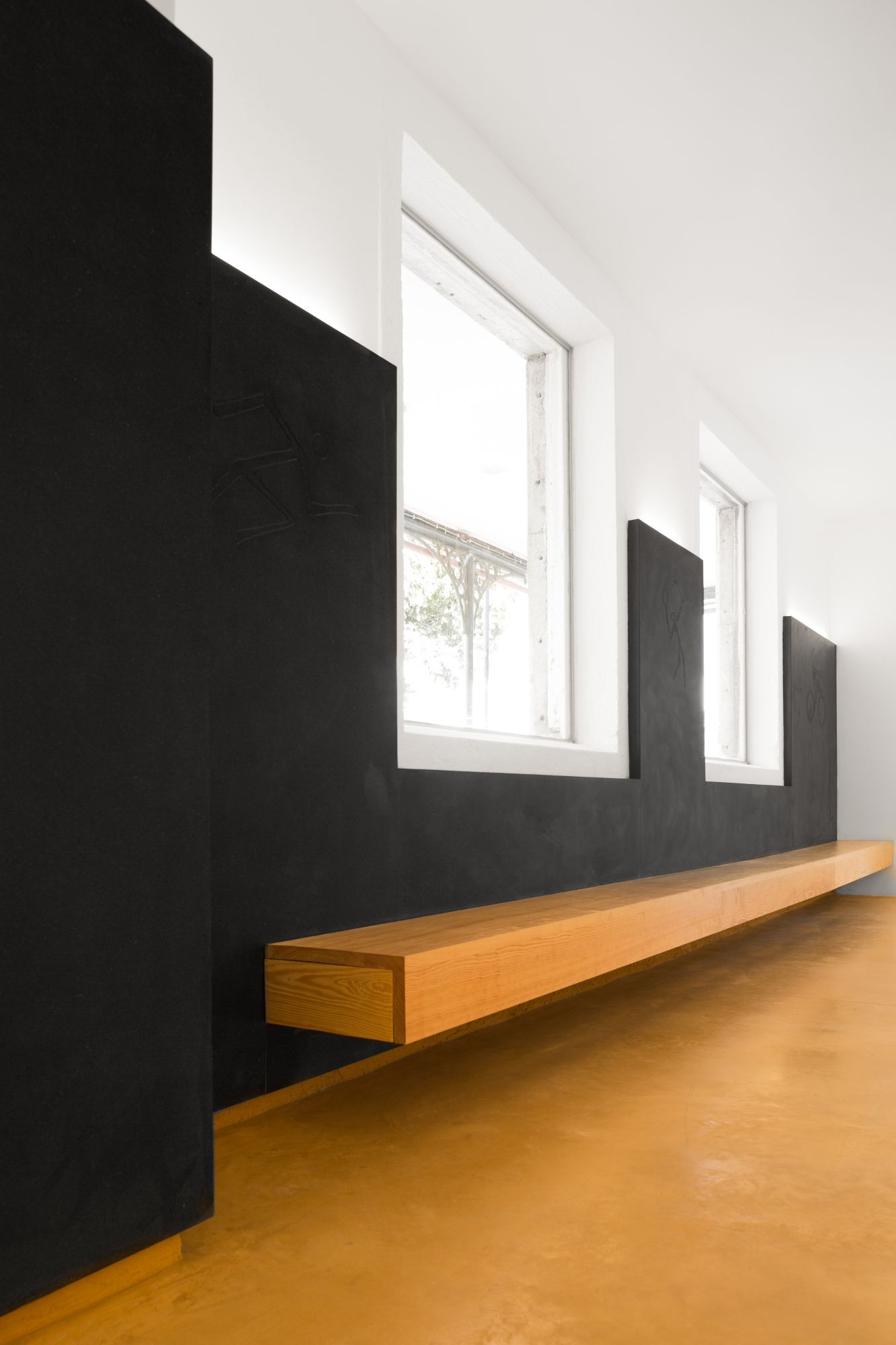 No interior, as paredes foram revestidas com painéis de madeira natural, com gravações representando as modalidades vitoriosas do clube. Estes painéis incorporaram iluminação artificial, criando uma luz uniforme no espaço. Os tetos foram restaurados, mantendo o estuque da sala principal e evidenciando, numa das salas, os vestígios de um incêndio ocorrido em 1982.
