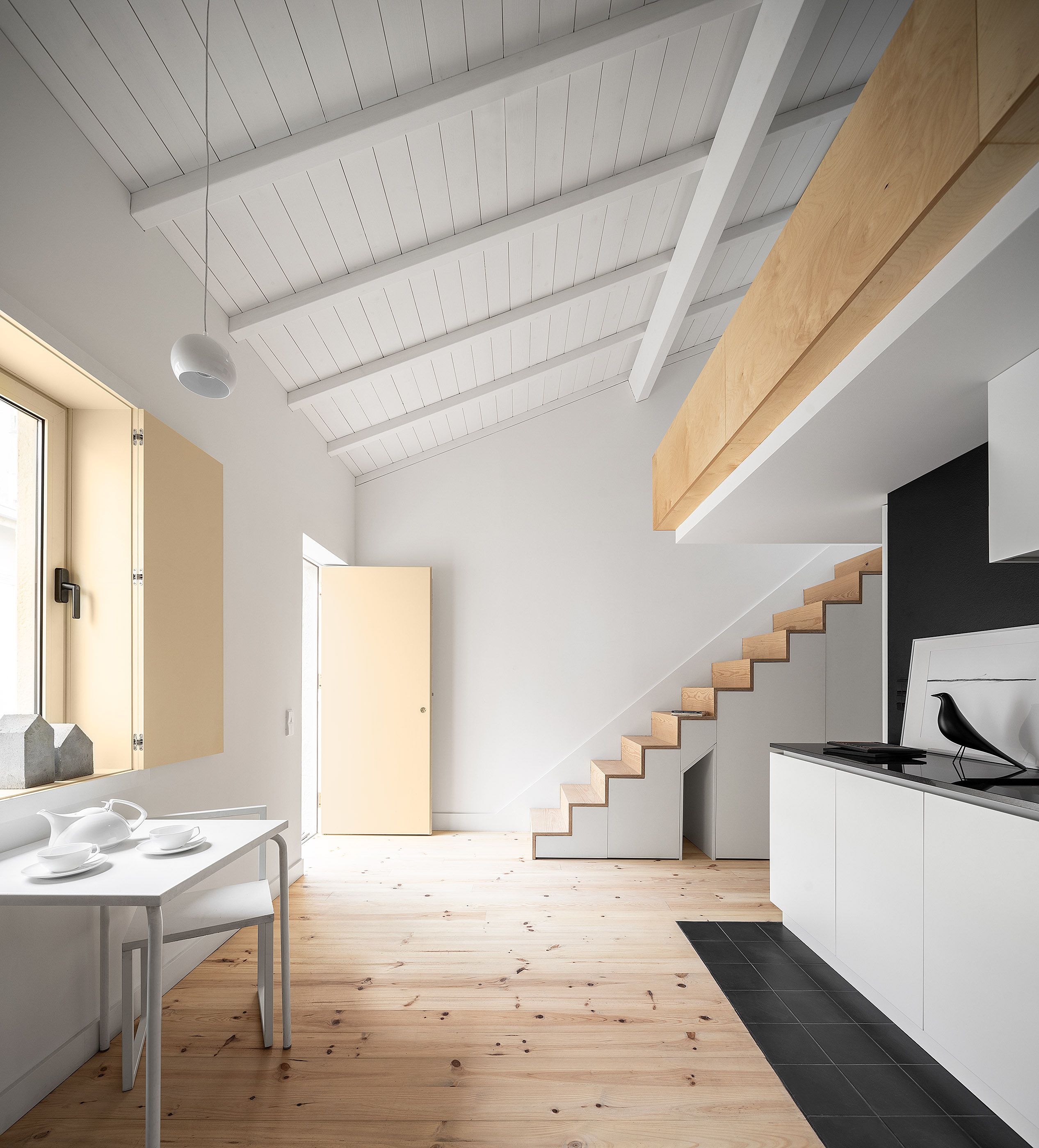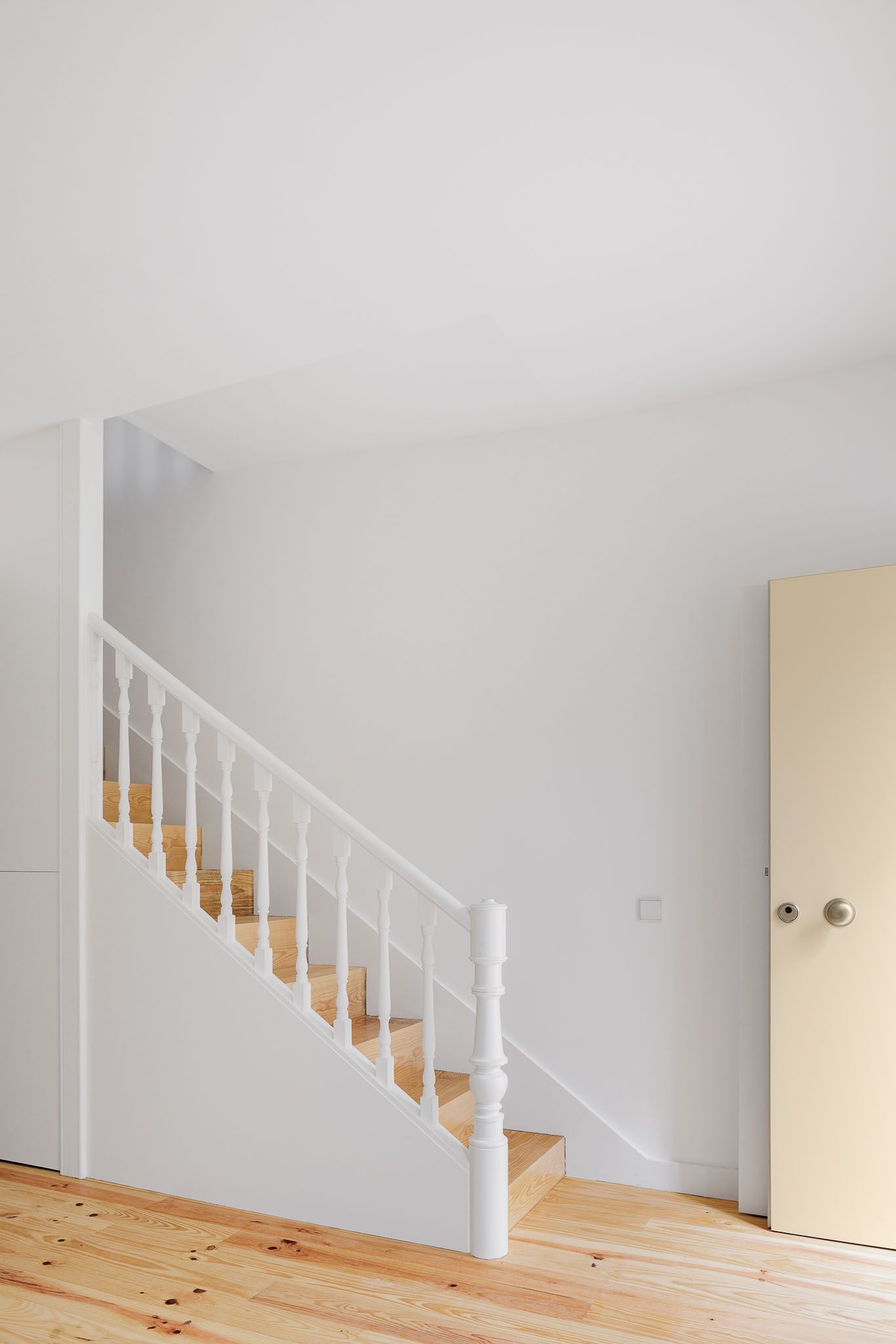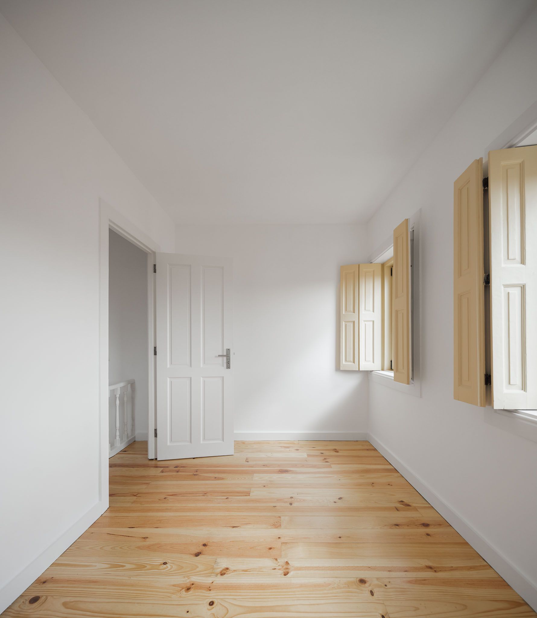 Na casa de dois pisos, que se encontra em melhores condições estruturais, será feita uma reabilitação cuidada, preservando os elementos construtivos originais, como a escada e estrutura de madeira, paredes de tabique, portas, guarnições e corrimãos.