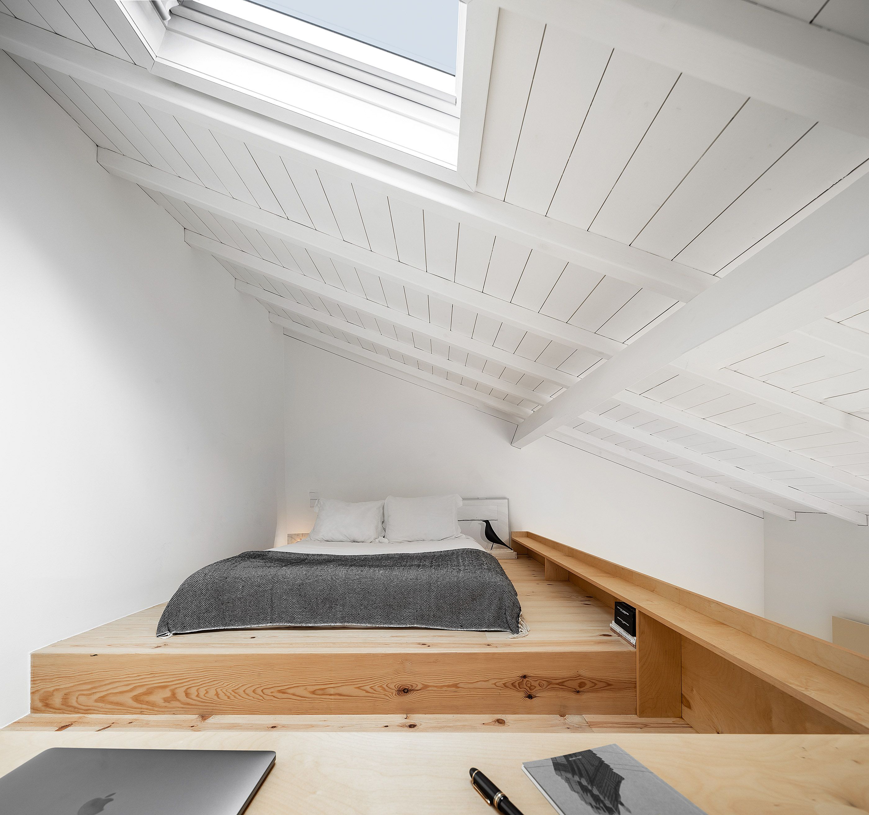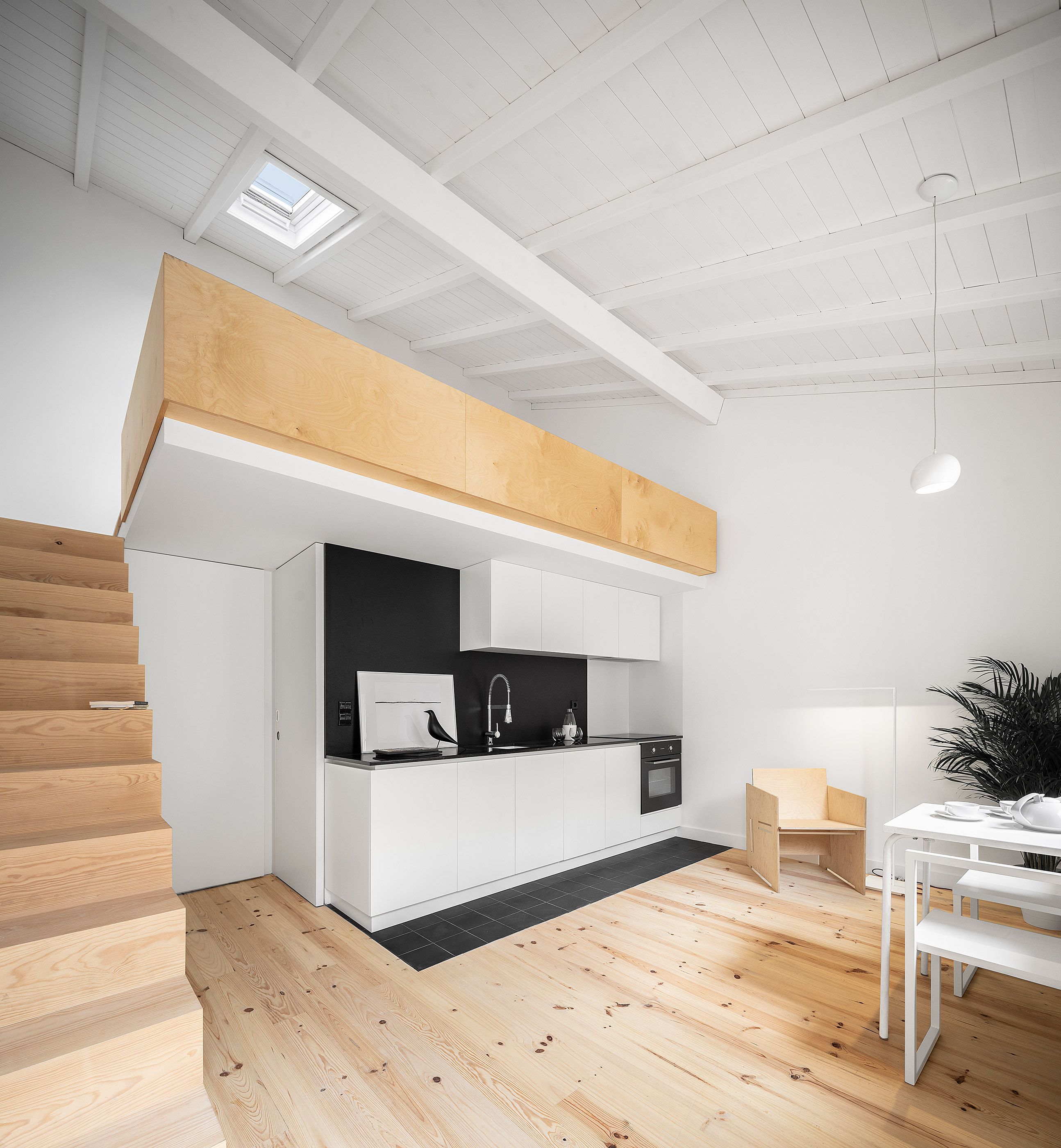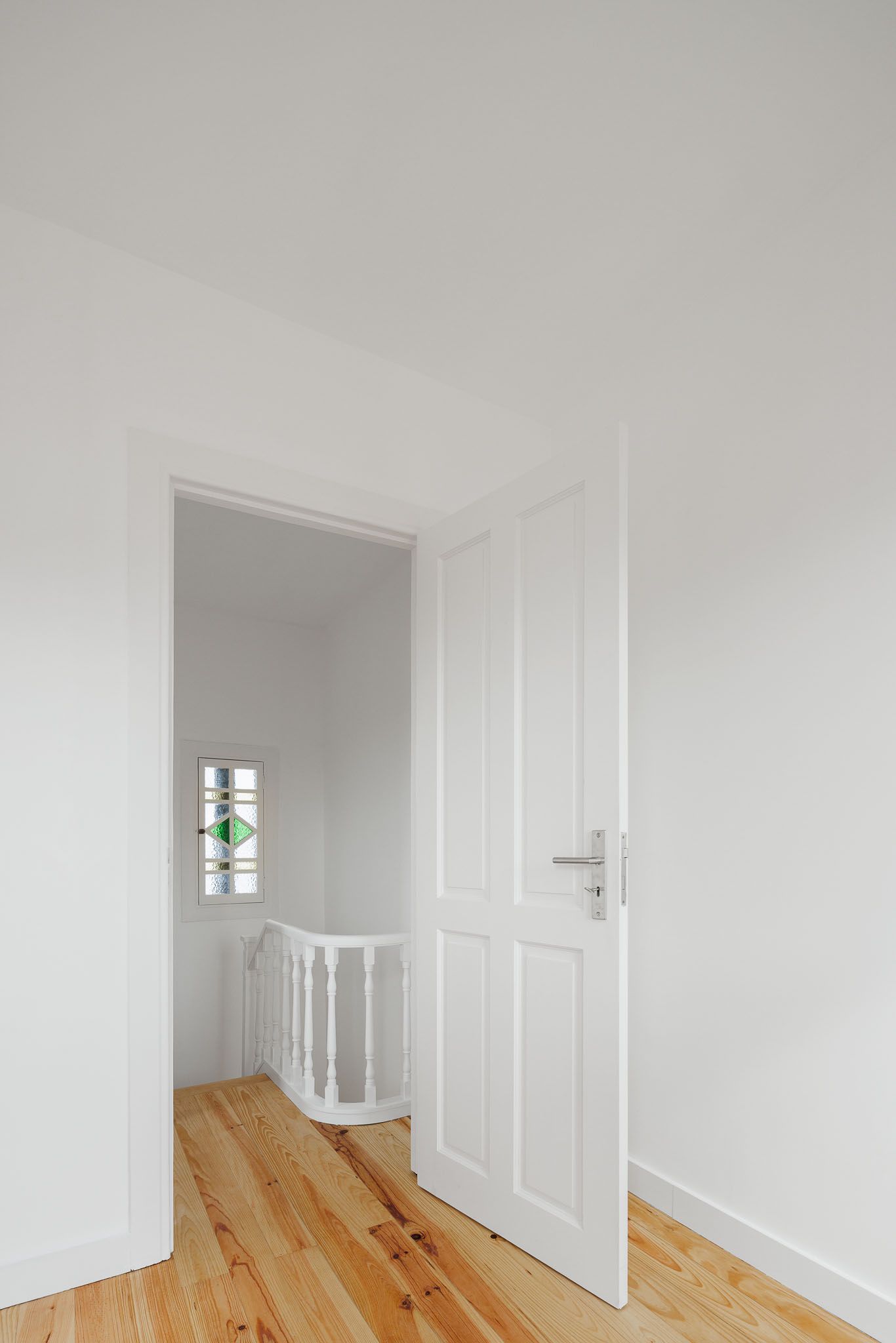 Na casa de dois pisos, que se encontra em melhores condições estruturais, será feita uma reabilitação cuidada, preservando os elementos construtivos originais, como a escada e estrutura de madeira, paredes de tabique, portas, guarnições e corrimãos.