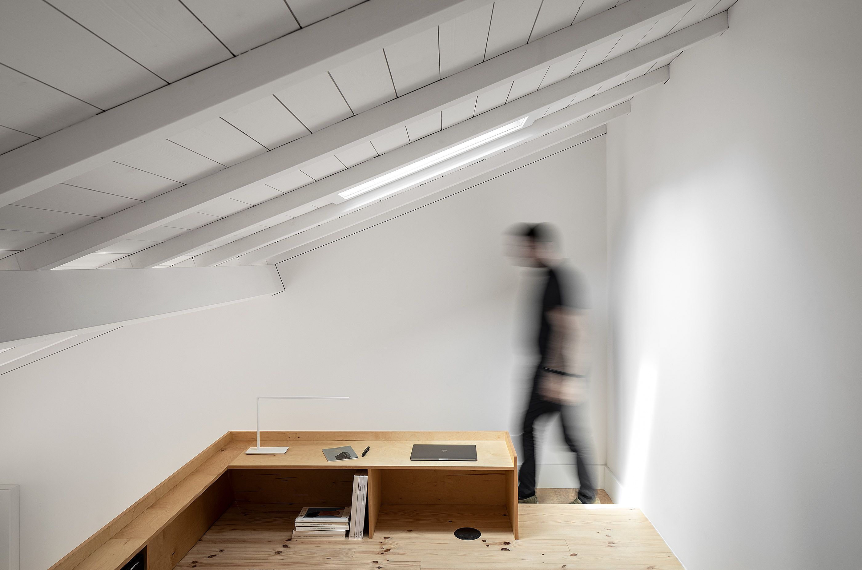 No escritório, devido ao tom escolhido para os rebocos e pavimentos, chamámos-lhe, informalmente, Ilha Amarela — nome provisório para um lugar com parte da sua história por reencontrar.