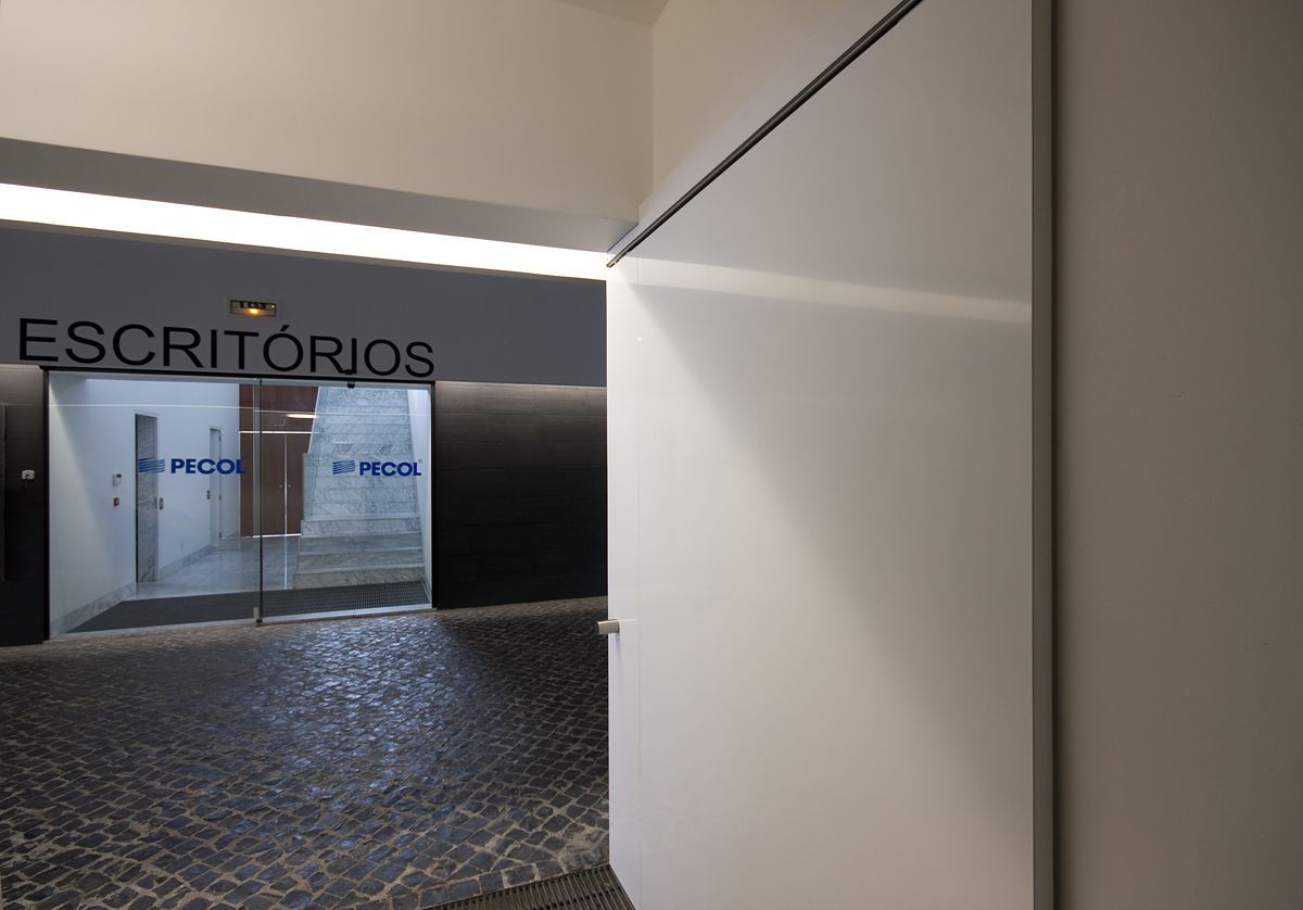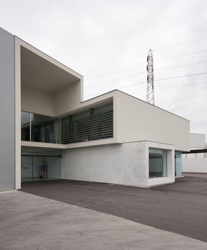 O edifício onde se localizam o showroom e os escritórios do departamento comercial remata o armazém que constitui a frente da fábrica; foi criado um grande hall, com pé-direito duplo, interligando-o com os pavilhões existentes e servindo de acesso aos funcionários, aos balneários, ao posto médico, ao refeitório e ao armazém.