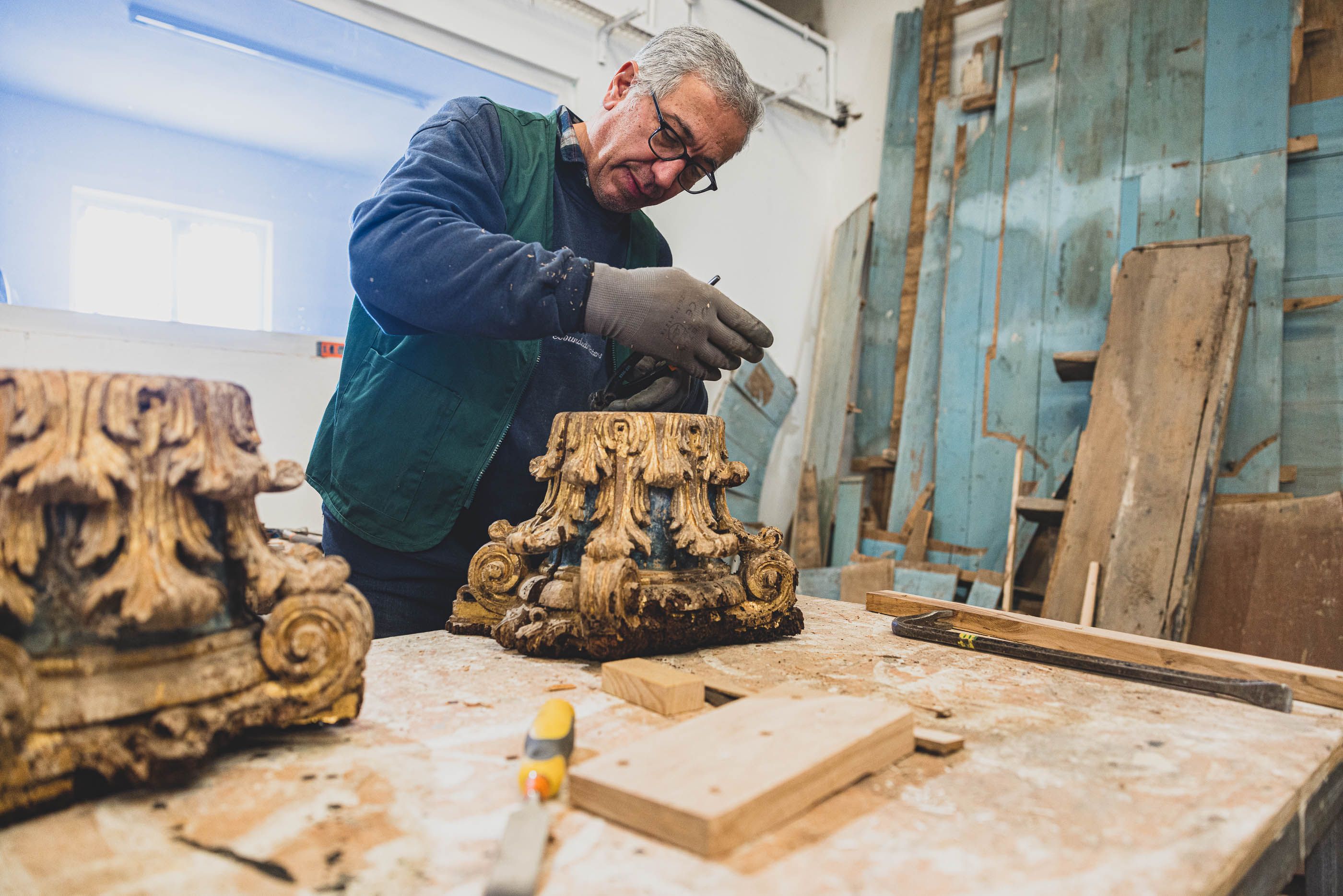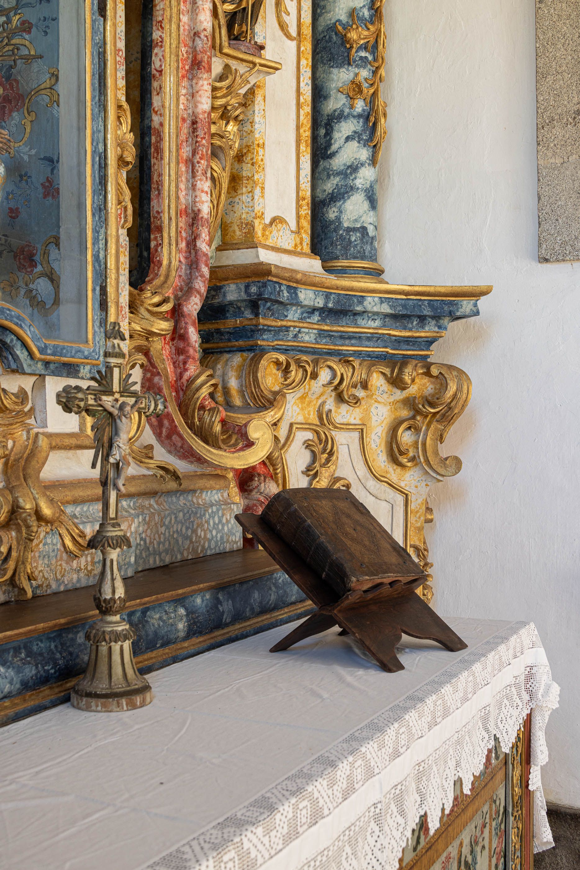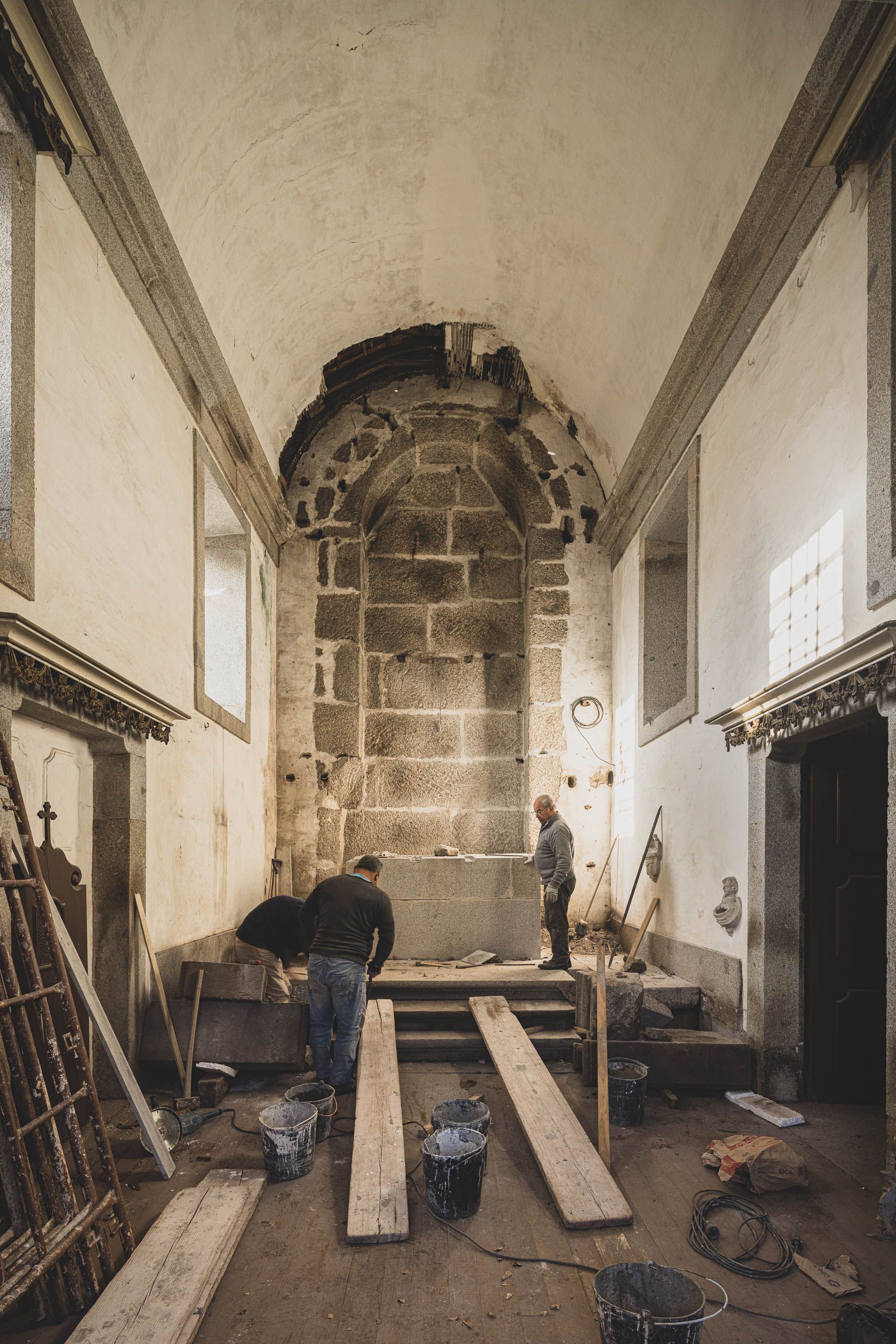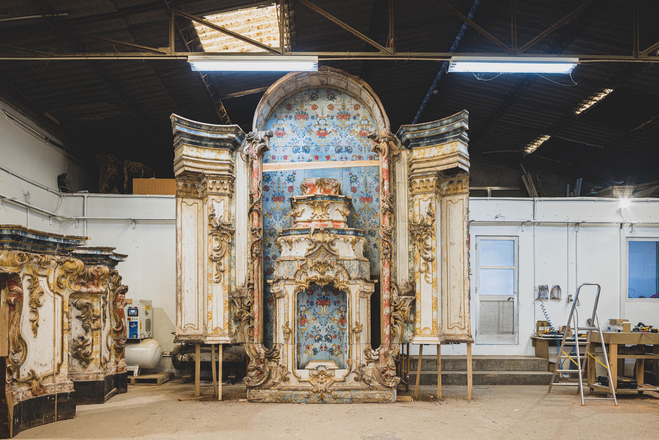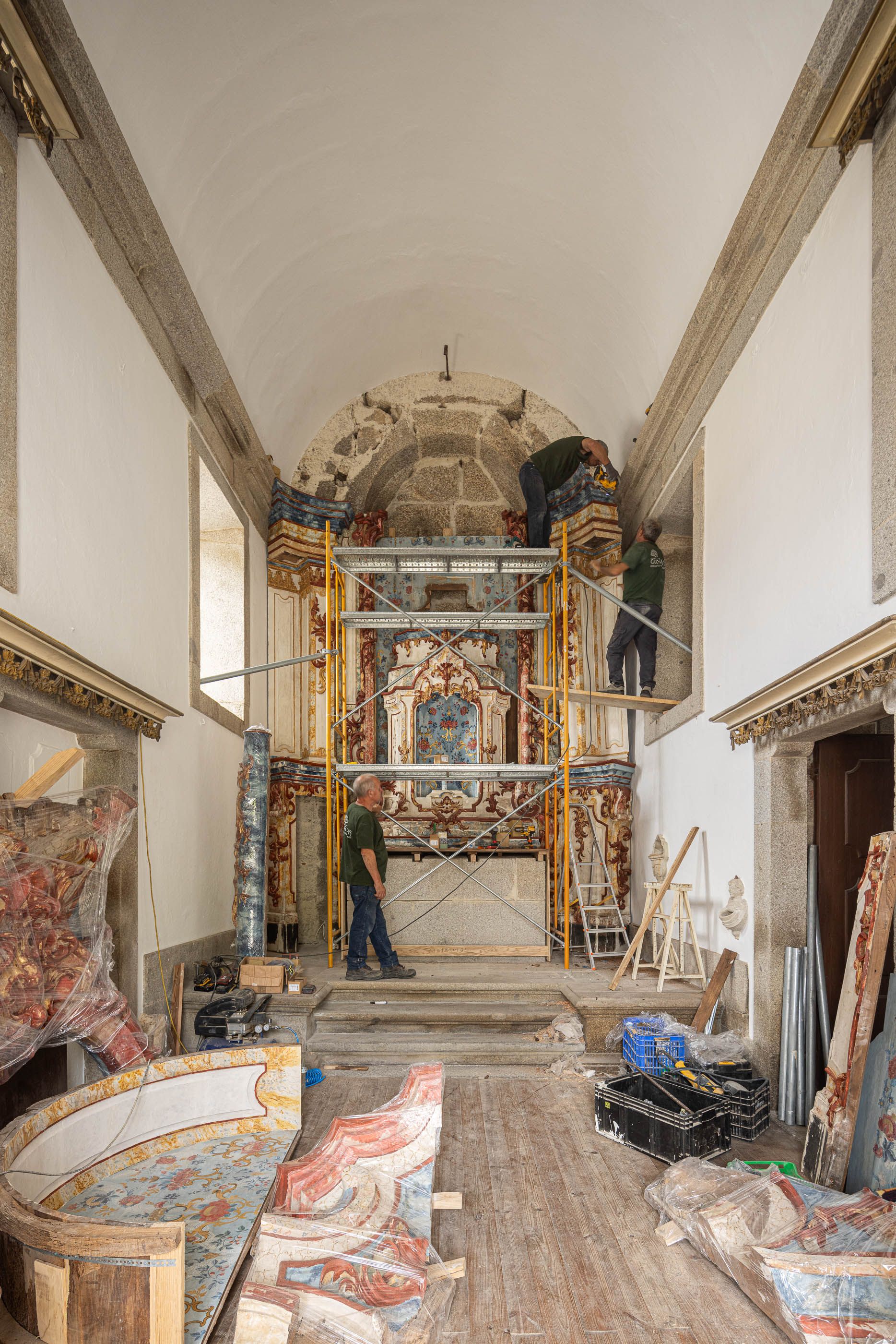 O restauro do altar-mor seguiu um rigoroso processo de conservação, desde a fixação da folha de ouro e policromia à reestruturação do suporte lenhoso, desmontagem e intervenção em atelier. Após limpeza e reintegração cromática, o retábulo foi reinstalado na capela.