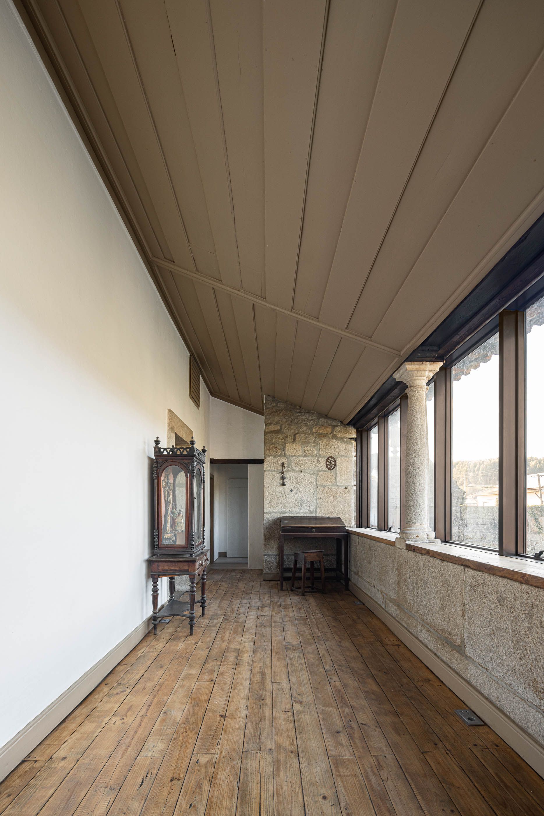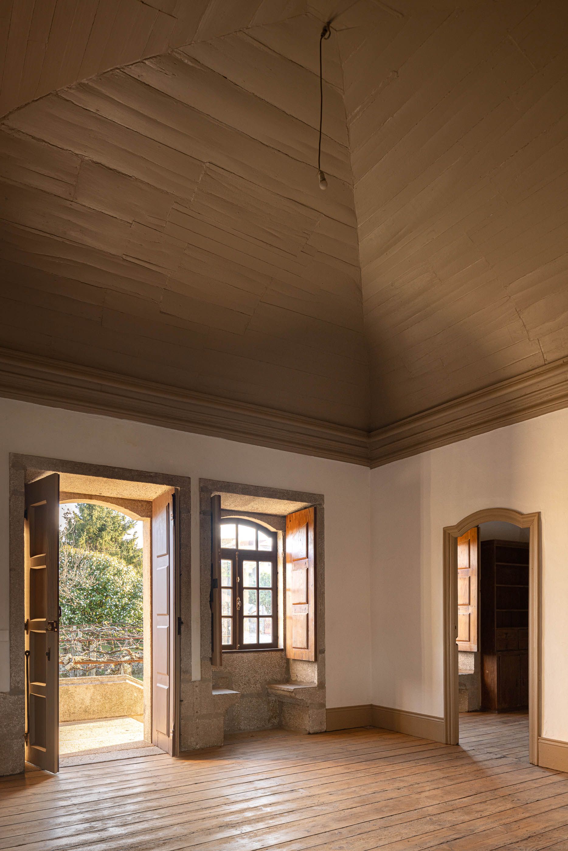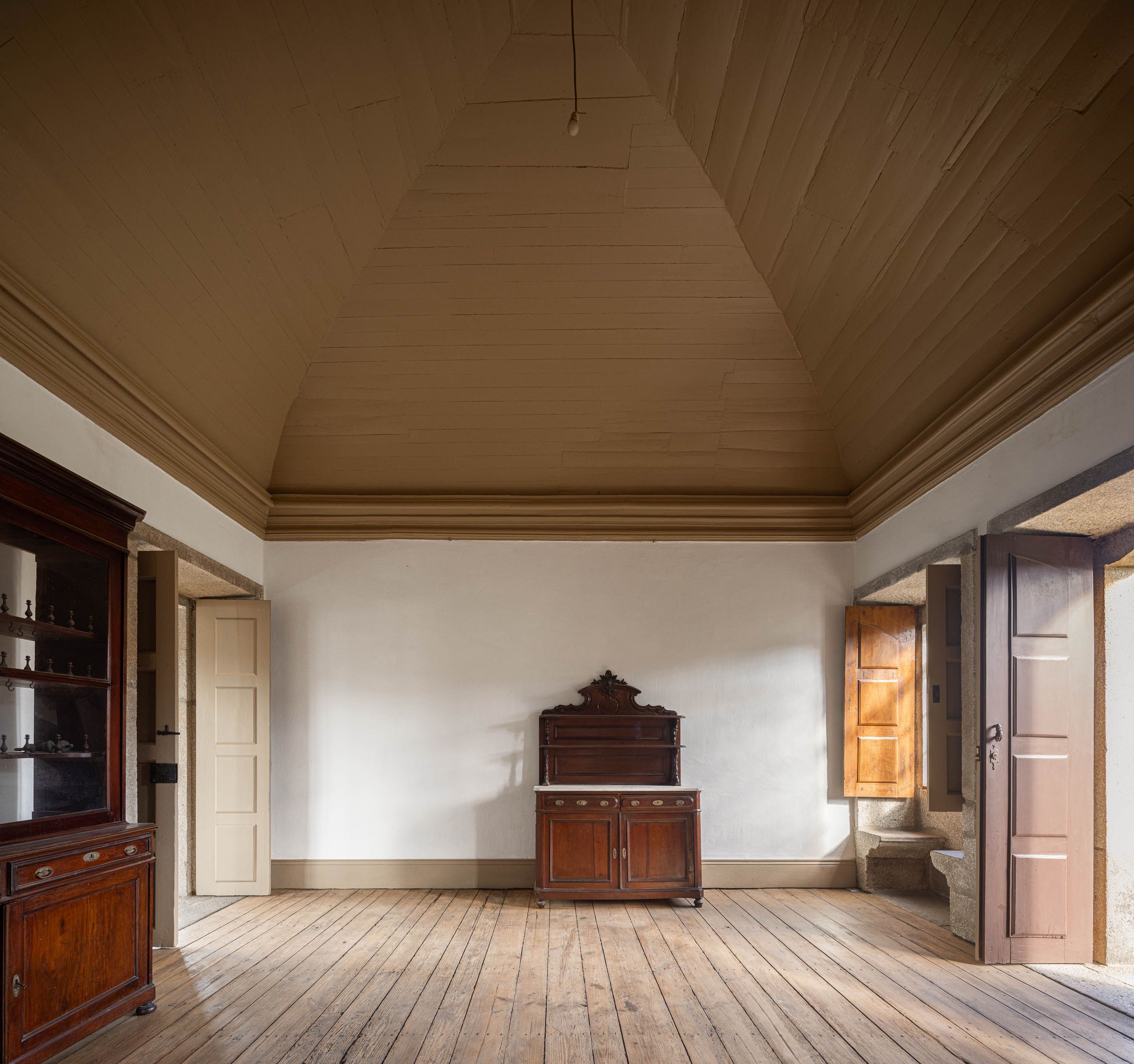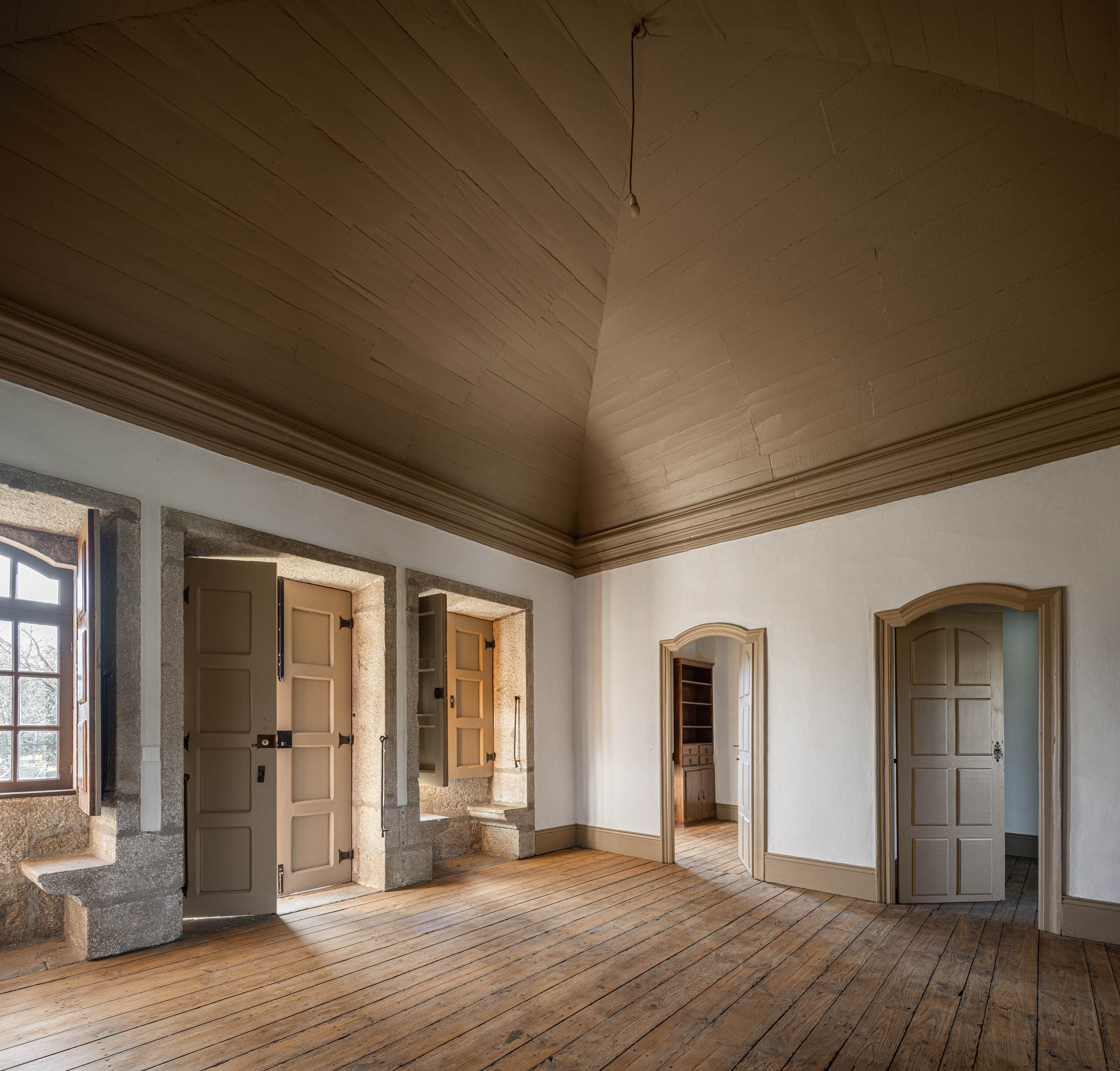 Apesar do bom estado geral, a casa necessitava de melhorias no telhado e isolamento térmico, enquanto a capela apresentava maior degradação, especialmente no retábulo e na abóbada de taipa. O projeto de reabilitação priorizou a conservação dos elementos existentes, realizando intervenções pontuais nas madeiras e reforçando a estrutura dos pavimentos. Os soalhos foram isolados com lã mineral, garantindo maior conforto térmico. As infraestruturas elétricas foram discretamente instaladas sob os pavimentos e tetos, evitando impacto nas paredes.