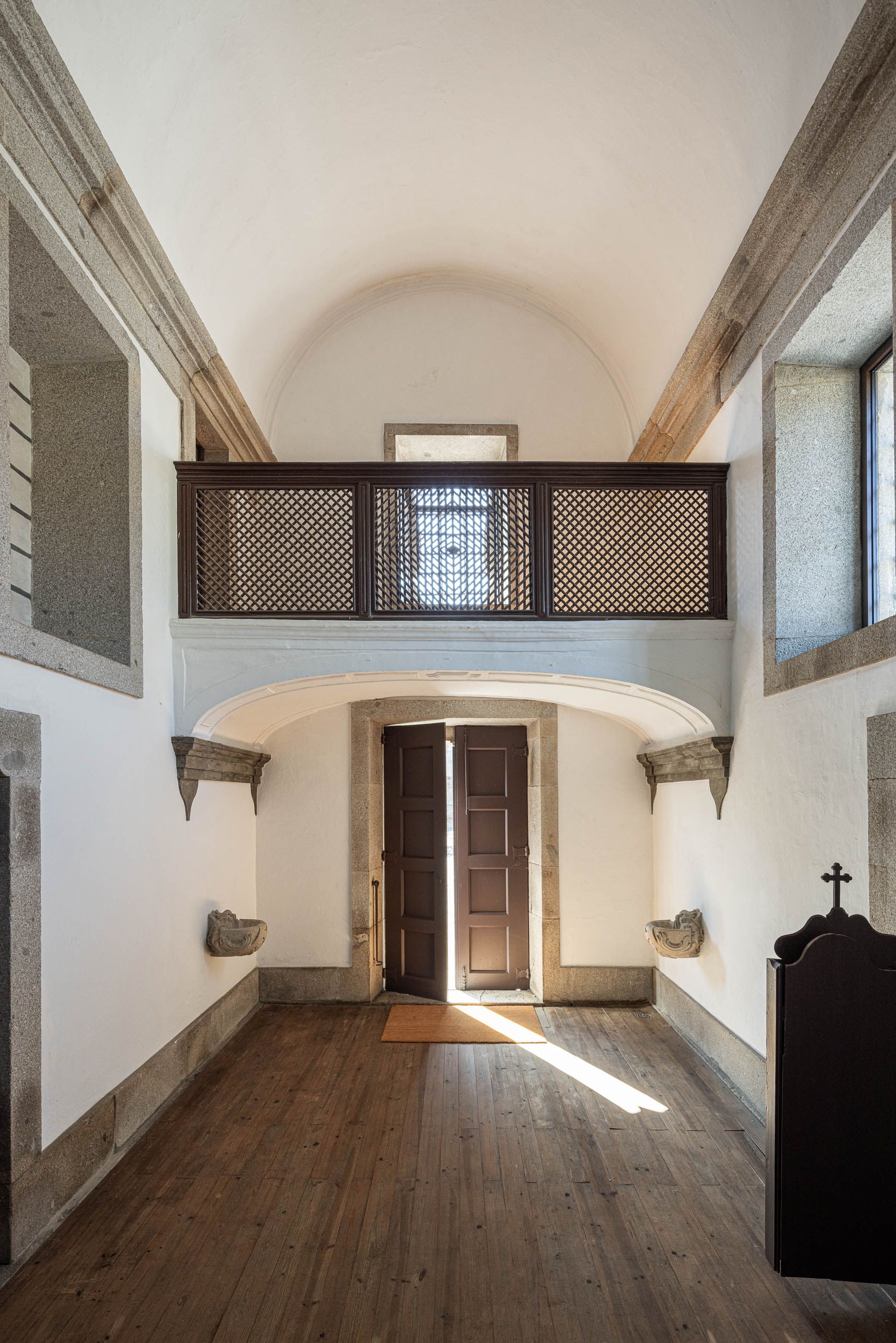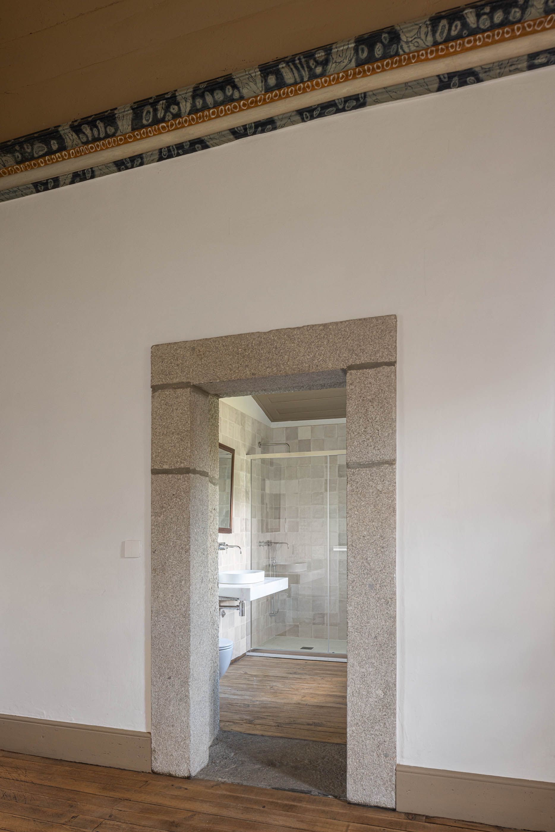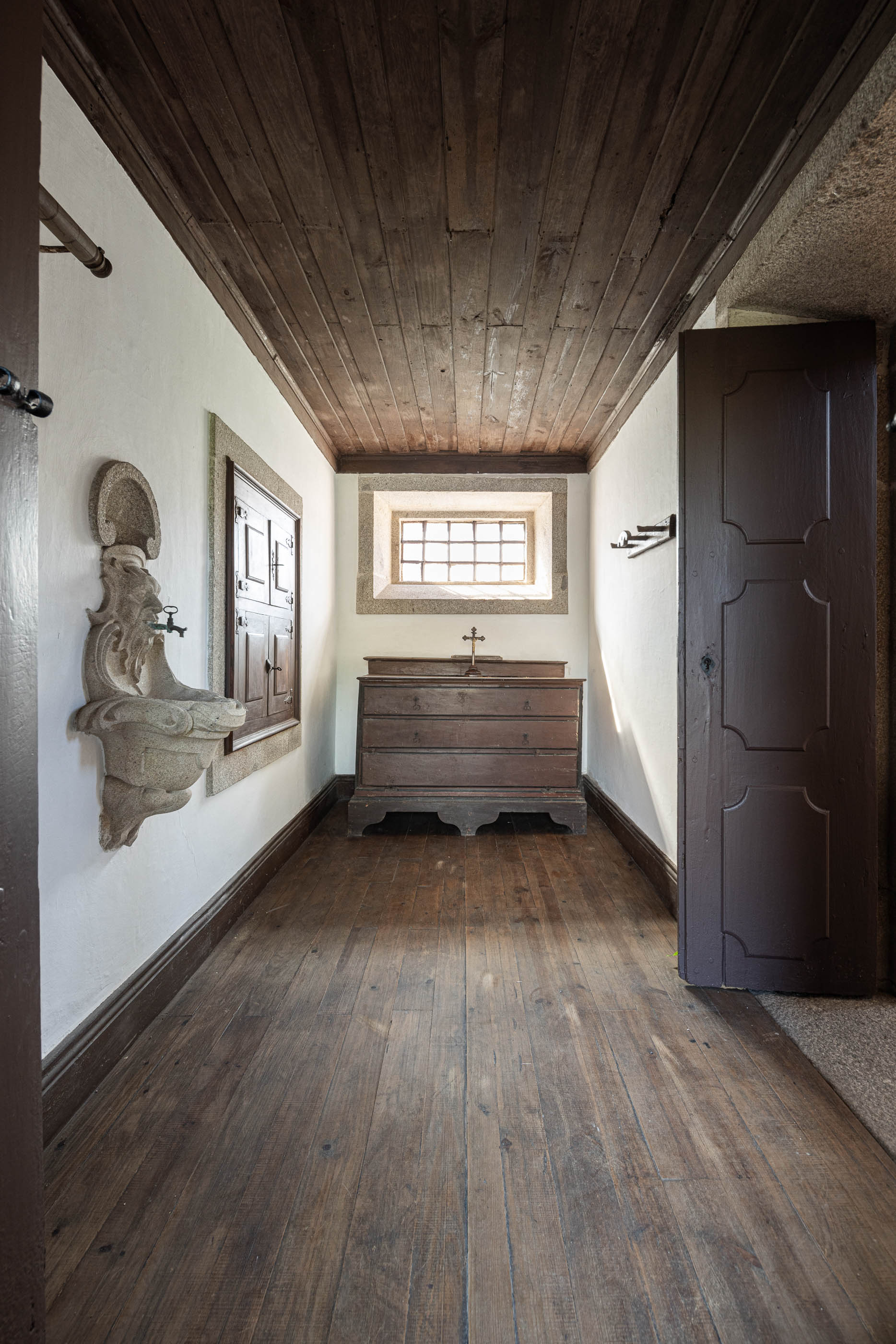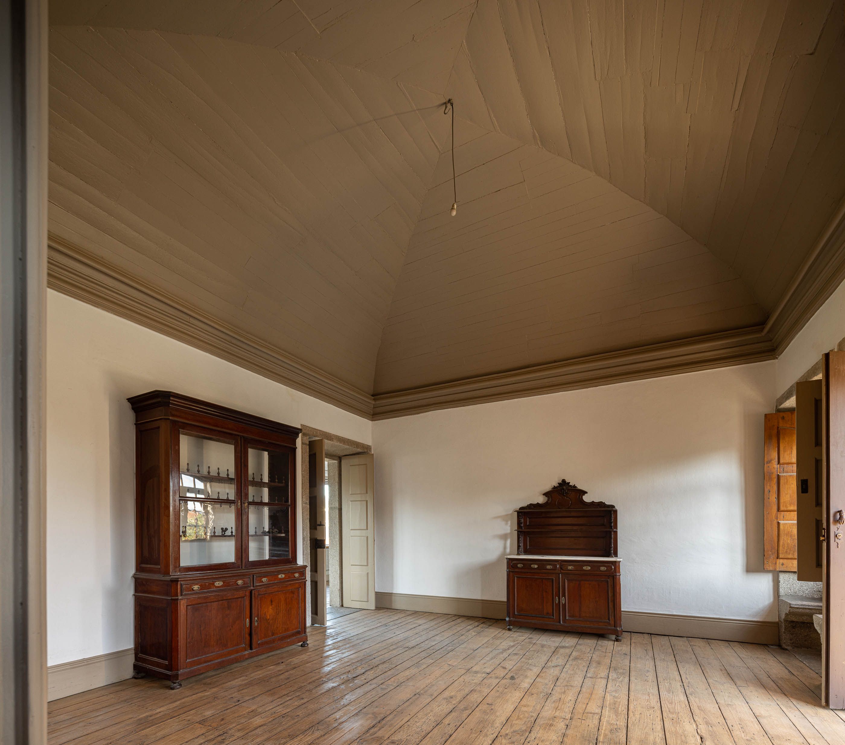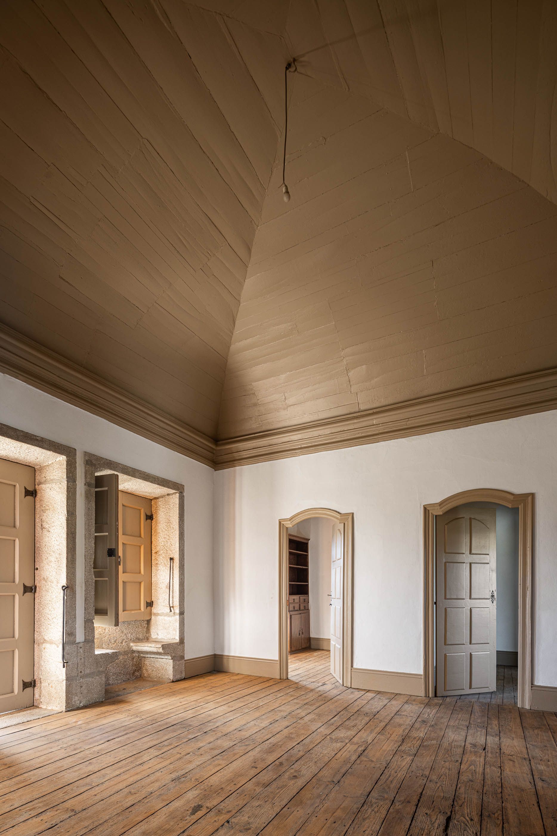 Apesar do bom estado geral, a casa necessitava de melhorias no telhado e isolamento térmico, enquanto a capela apresentava maior degradação, especialmente no retábulo e na abóbada de taipa. O projeto de reabilitação priorizou a conservação dos elementos existentes, realizando intervenções pontuais nas madeiras e reforçando a estrutura dos pavimentos. Os soalhos foram isolados com lã mineral, garantindo maior conforto térmico. As infraestruturas elétricas foram discretamente instaladas sob os pavimentos e tetos, evitando impacto nas paredes.