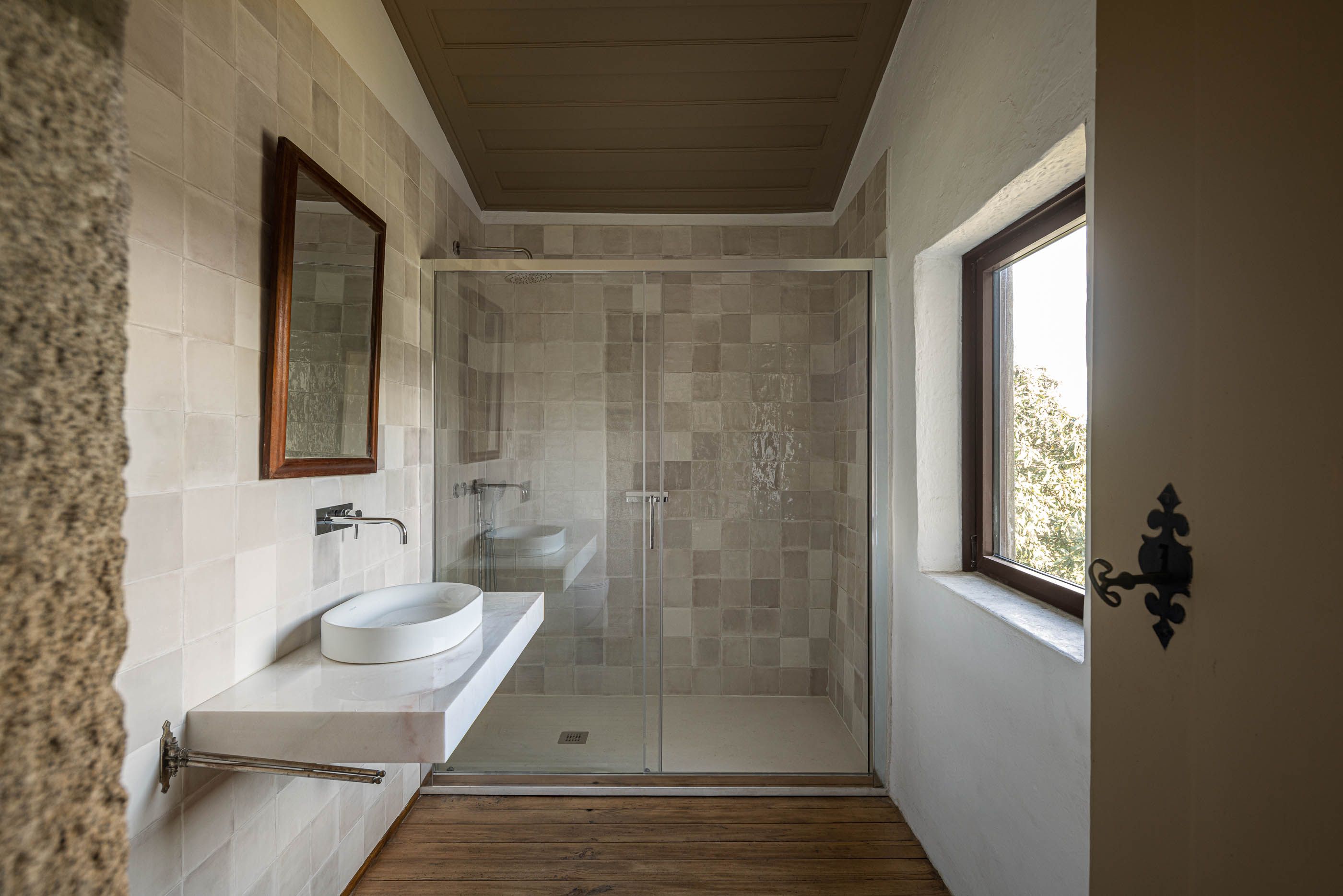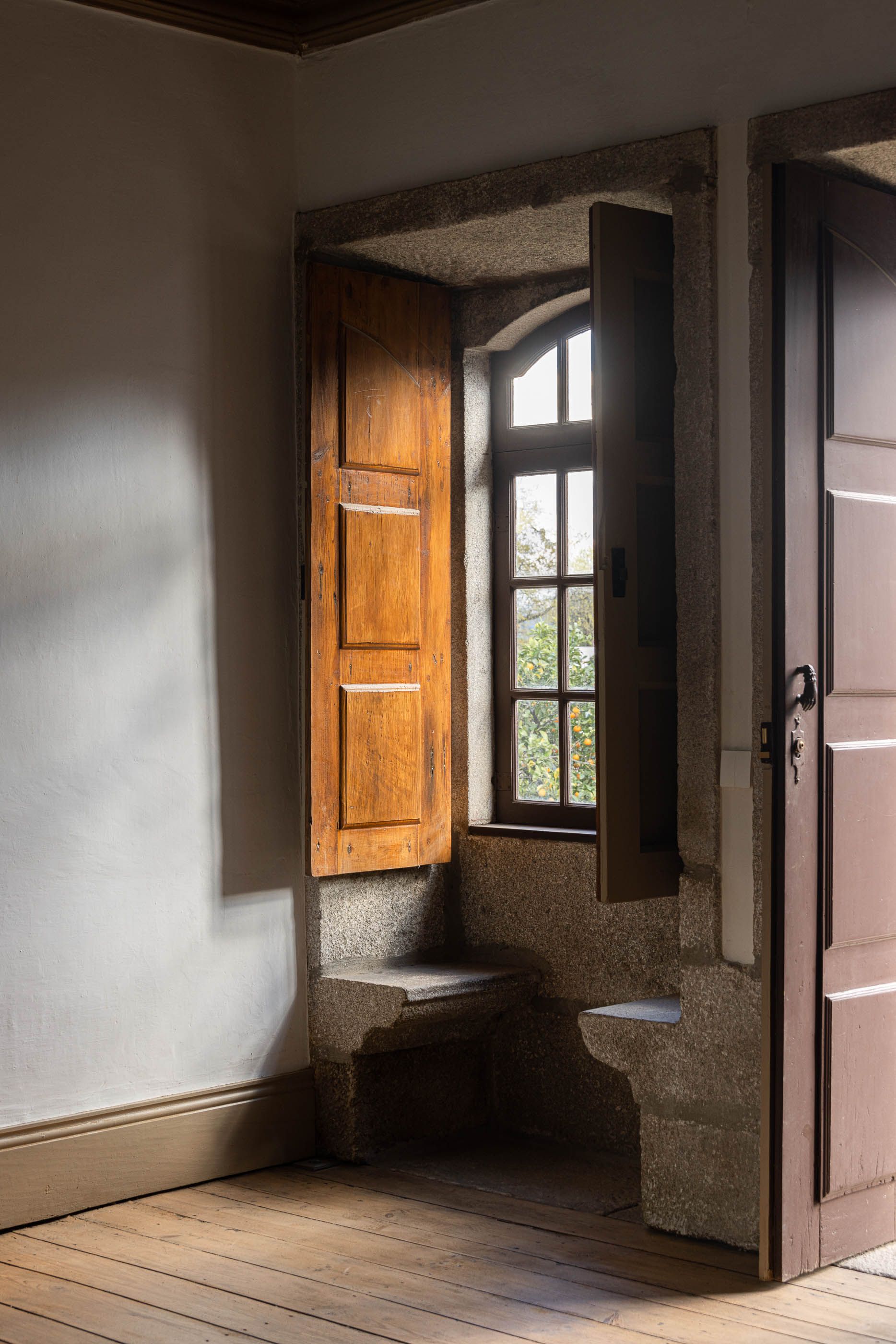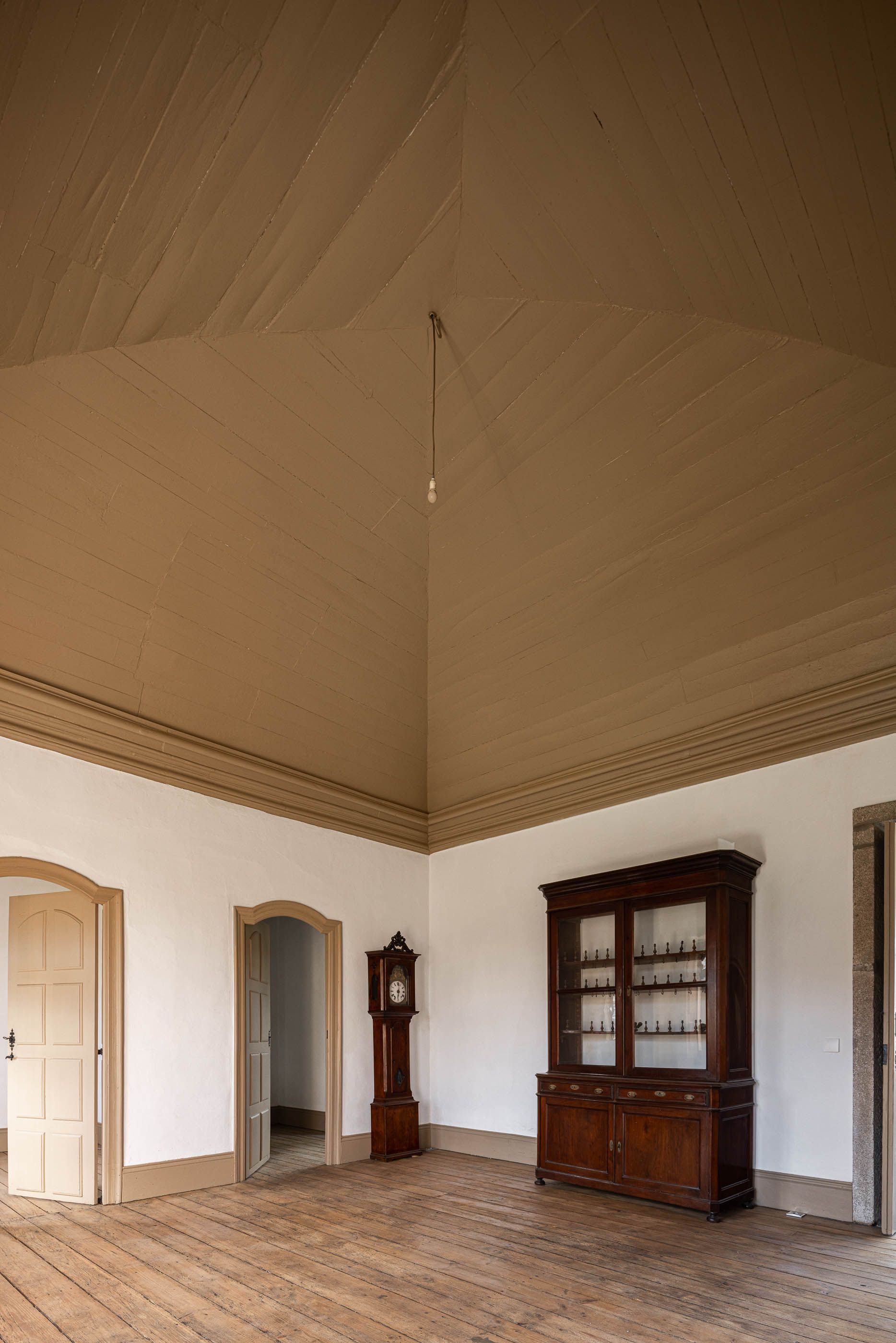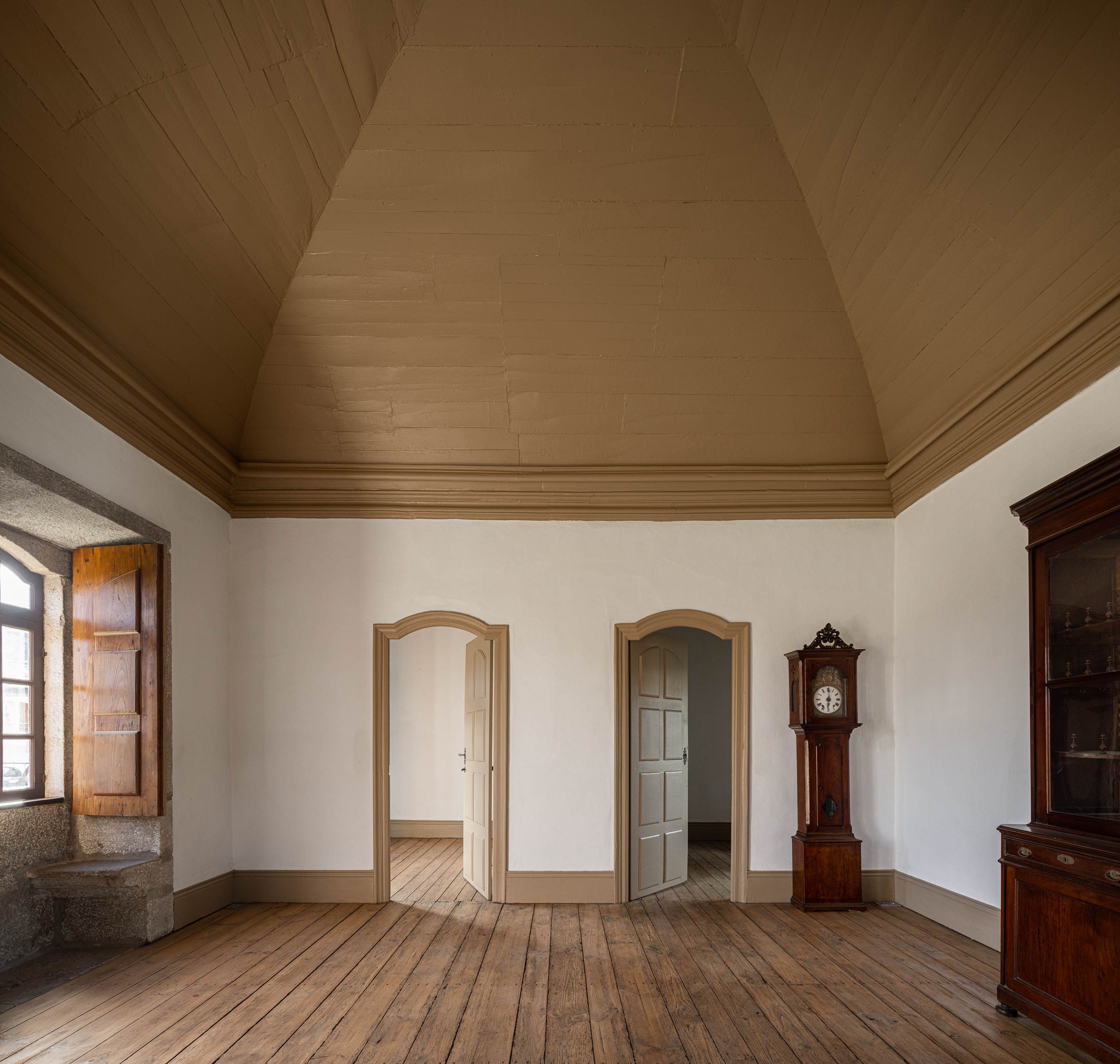 Apesar do bom estado geral, a casa necessitava de melhorias no telhado e isolamento térmico, enquanto a capela apresentava maior degradação, especialmente no retábulo e na abóbada de taipa. O projeto de reabilitação priorizou a conservação dos elementos existentes, realizando intervenções pontuais nas madeiras e reforçando a estrutura dos pavimentos. Os soalhos foram isolados com lã mineral, garantindo maior conforto térmico. As infraestruturas elétricas foram discretamente instaladas sob os pavimentos e tetos, evitando impacto nas paredes.