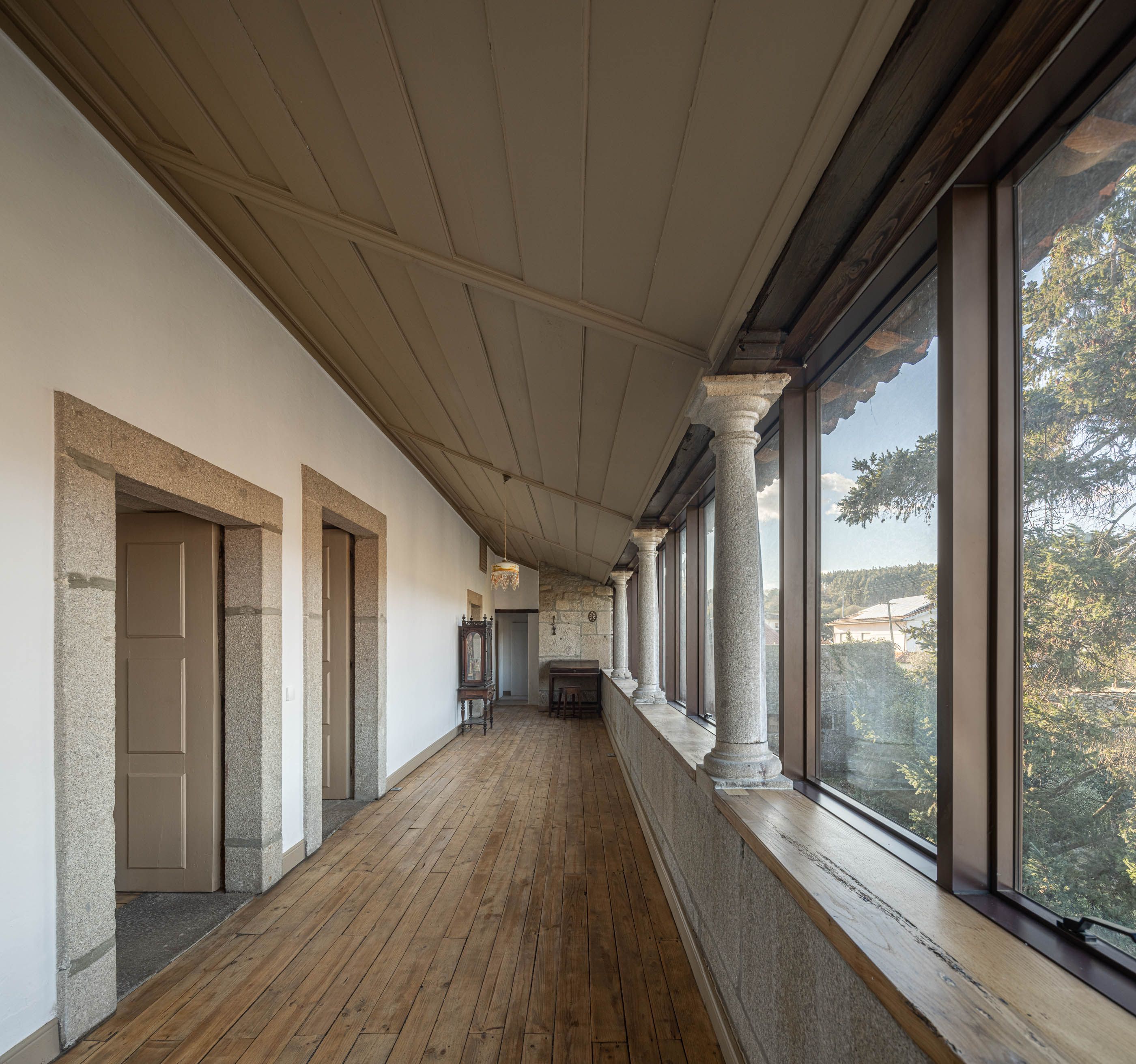 A remodelação incluiu a adaptação de um compartimento exterior para cozinha e casa de banho. No varandão nascente, a remoção de uma parede de tabique degradada restituiu a visibilidade das colunas de granito, sendo substituída por um grande envidraçado, mantendo o espaço fechado.