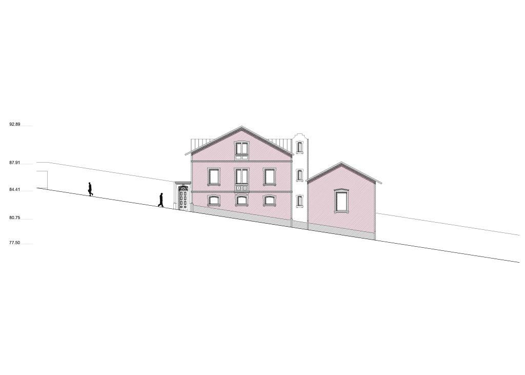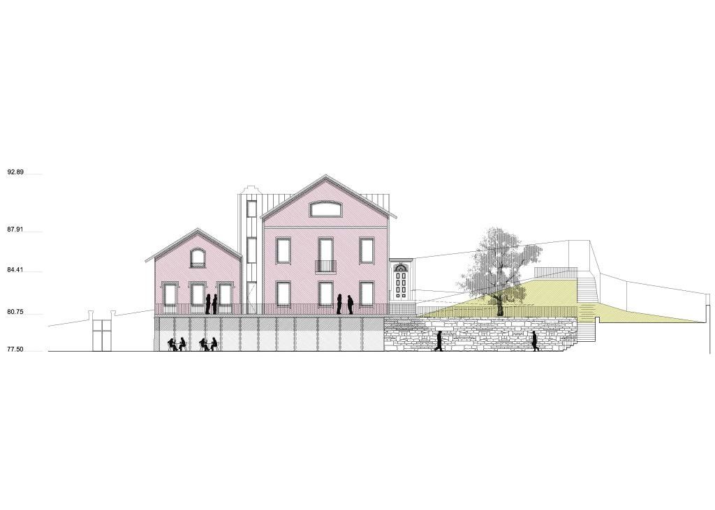 The proposal maintains the volume and layout of the building, thus preserving the privileged visual relationship with the River Douro, which could be enhanced by the redevelopment of the garden and woodland of Quinta de Baixo.
