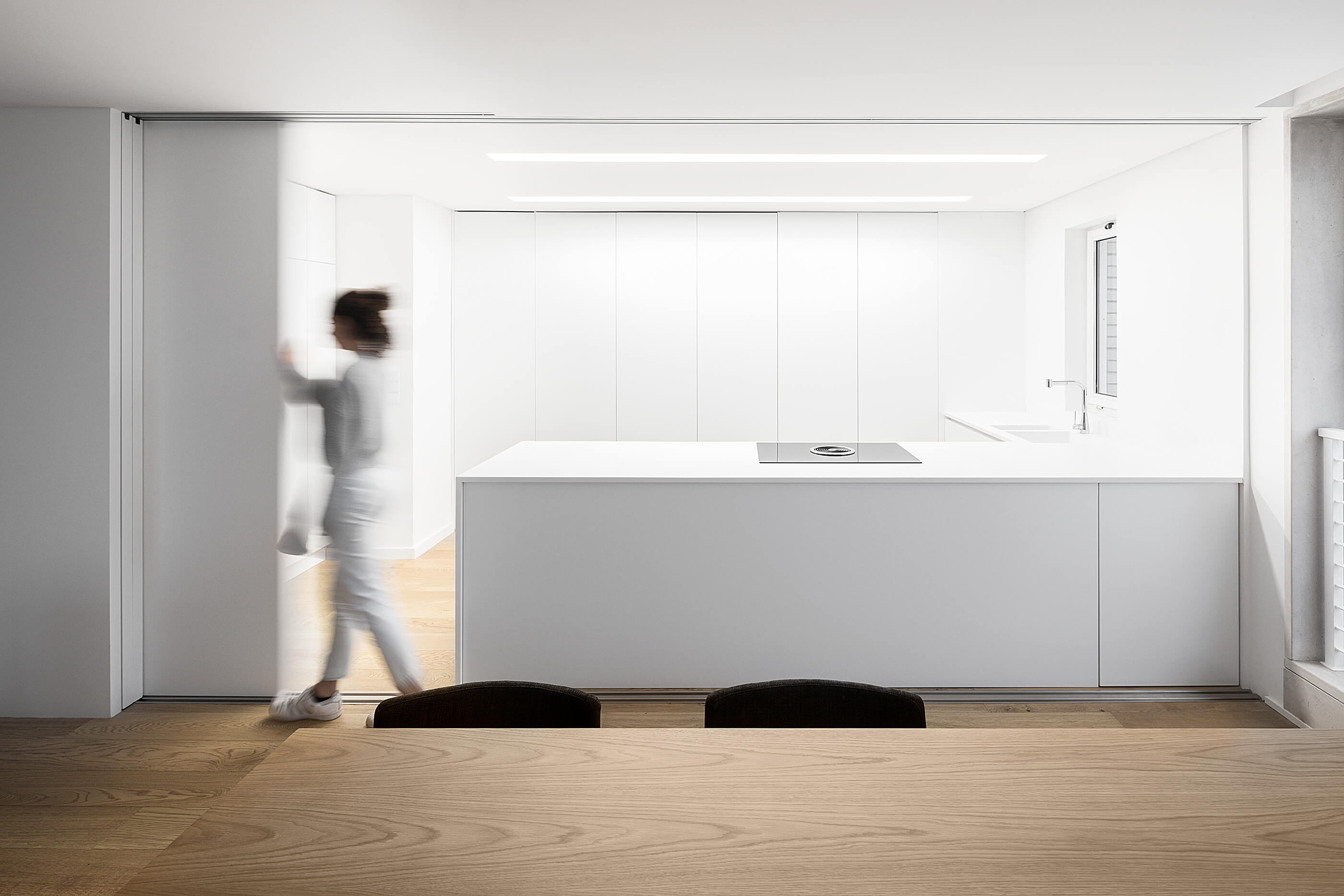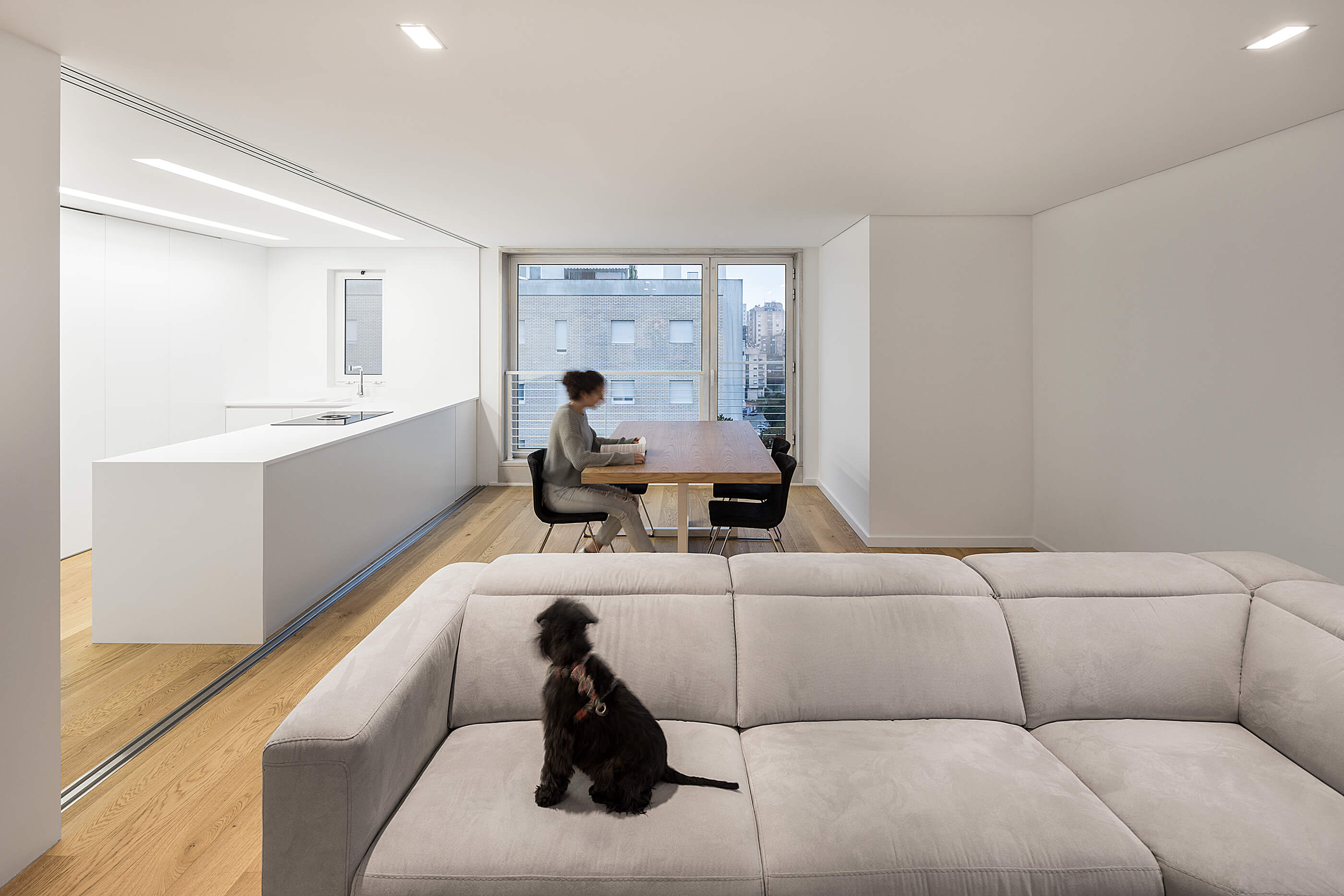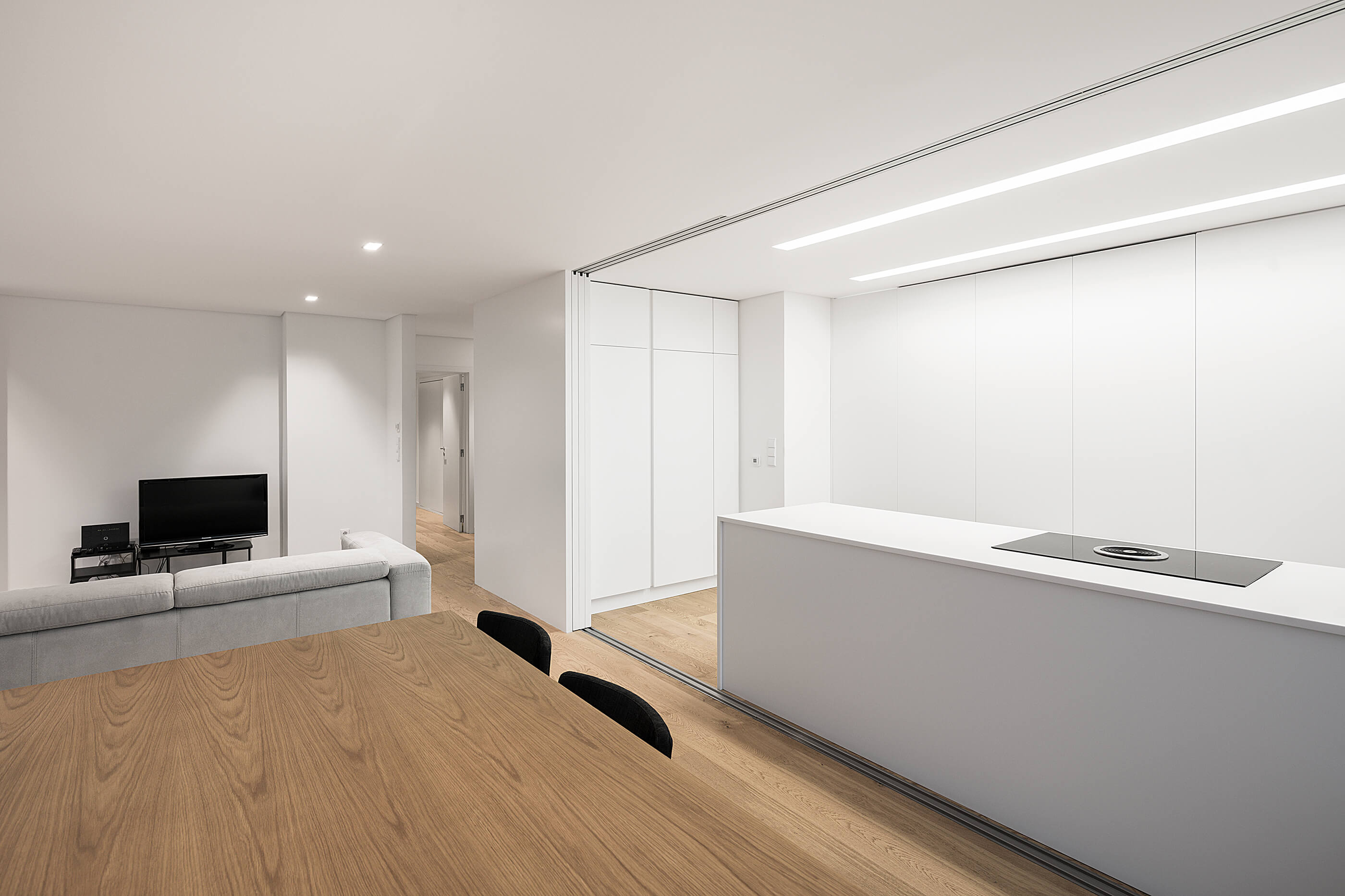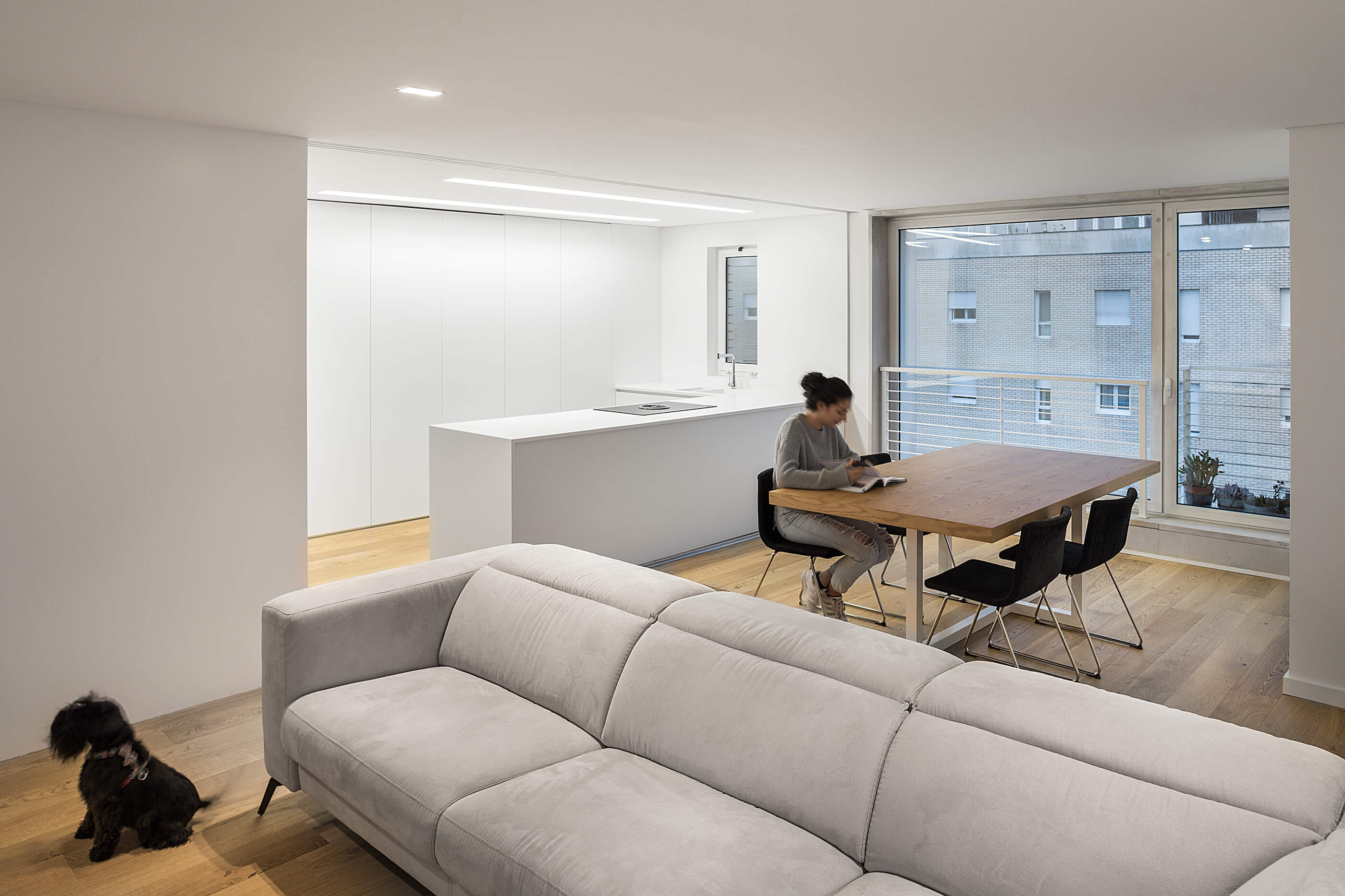 Refurbishment of a 130 m2 apartment in a building built in the late 1980s in the city of Porto. The work included connecting the kitchen to the living room, refurbishing the bathrooms and renovating the floor and wall coverings and the water, electricity and heating infrastructures.