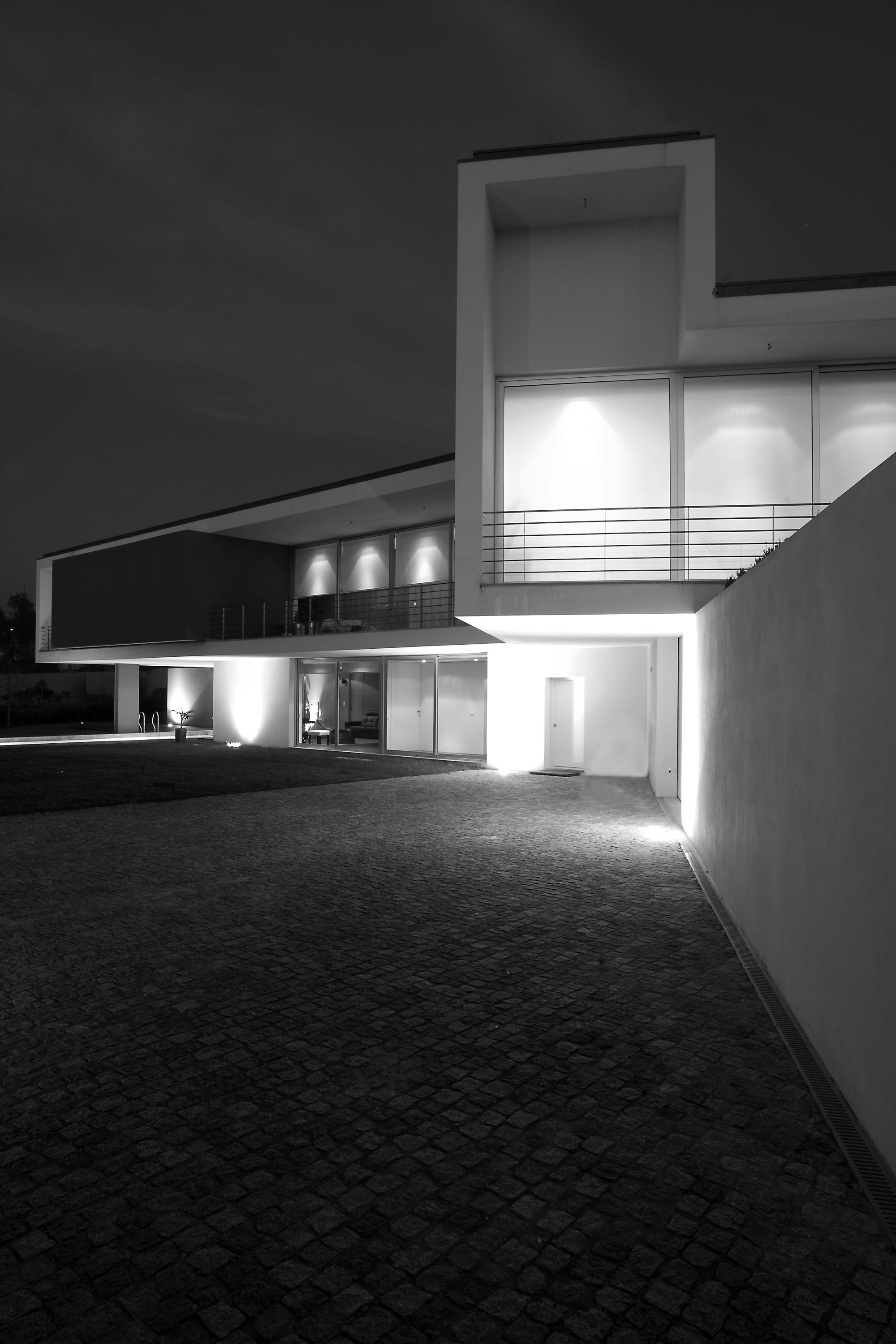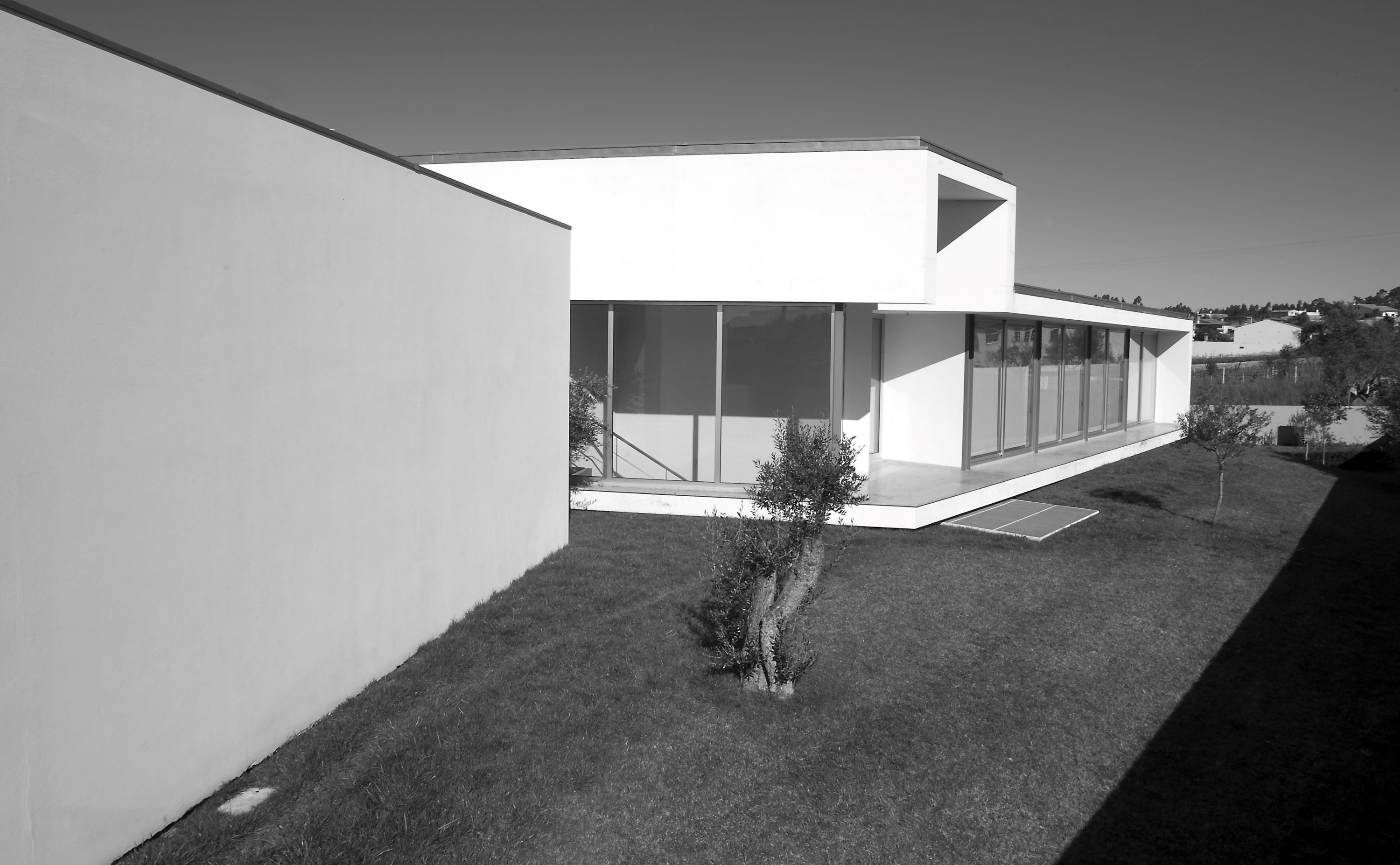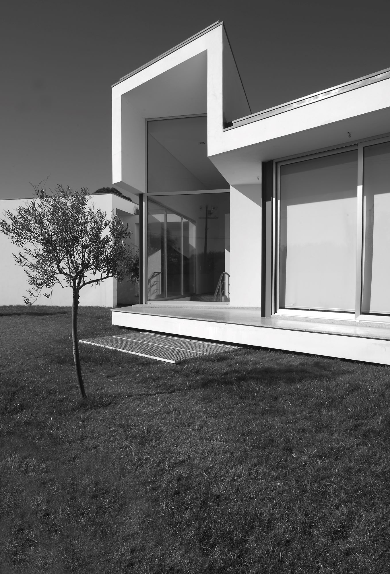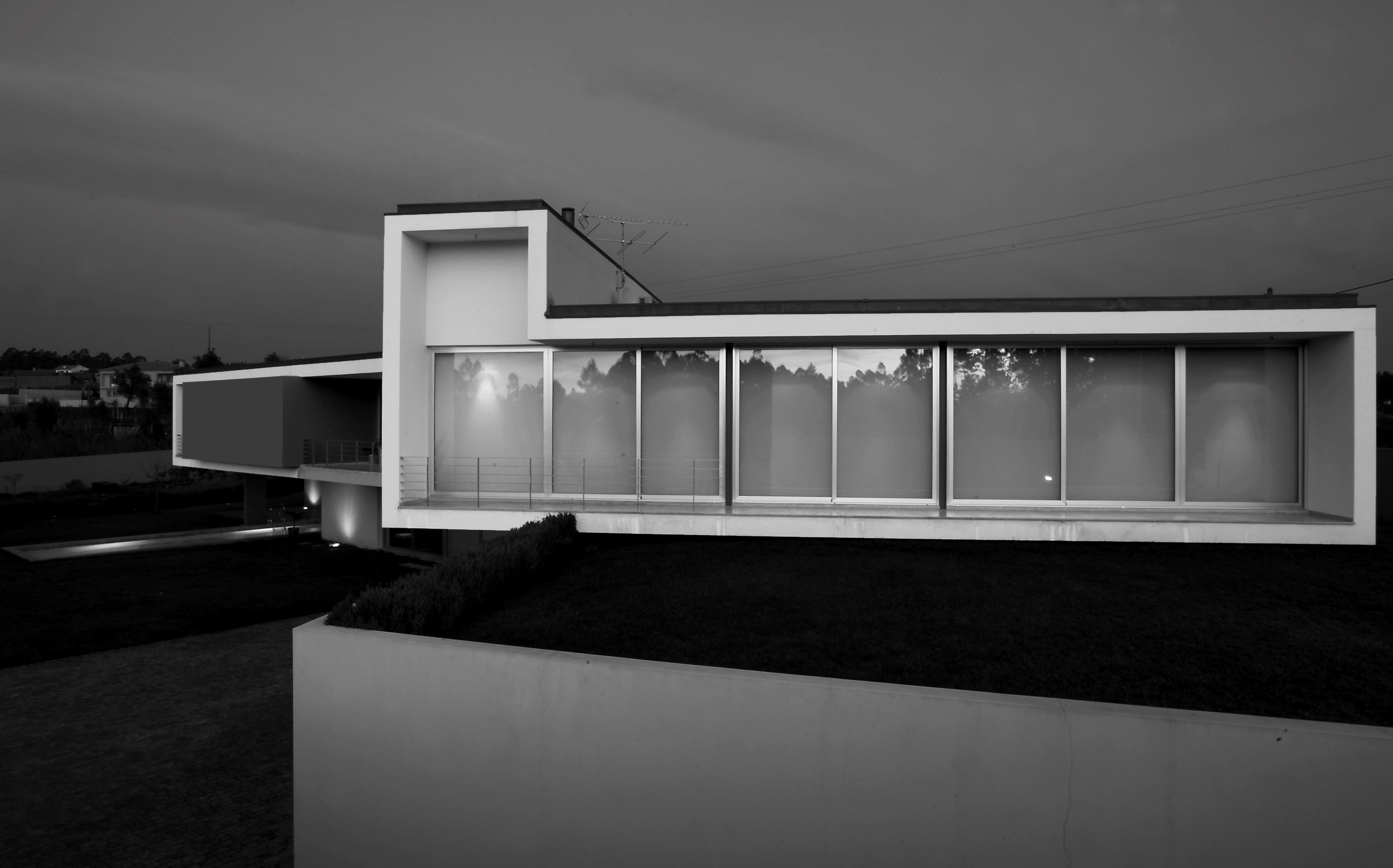 The land where the project is located is the result of the expansion of a small cluster of rural features with scattered buildings. It is a house for permanent use, with three bedrooms, two living rooms and services, located on a trapezoidal, almost rectangular plot of land, slightly oblique in relation to the road and with a downward slope in depth. The shape and slope of the land suggested that the house be located in depth, creating a volume aligned with the road and another volume, parallel to the lateral limits of the land, to make better use of the surrounding outdoor space. Another volume was created to connect the two volumes, with a higher ceiling, where the stairs leading to the lower floor and the kitchen are located. The project prioritized the relationships between the living spaces and the exterior, based on the intended program, seeking solar optimization and a (nearly impossible) dialogue with the (almost non-existent) urban elements.