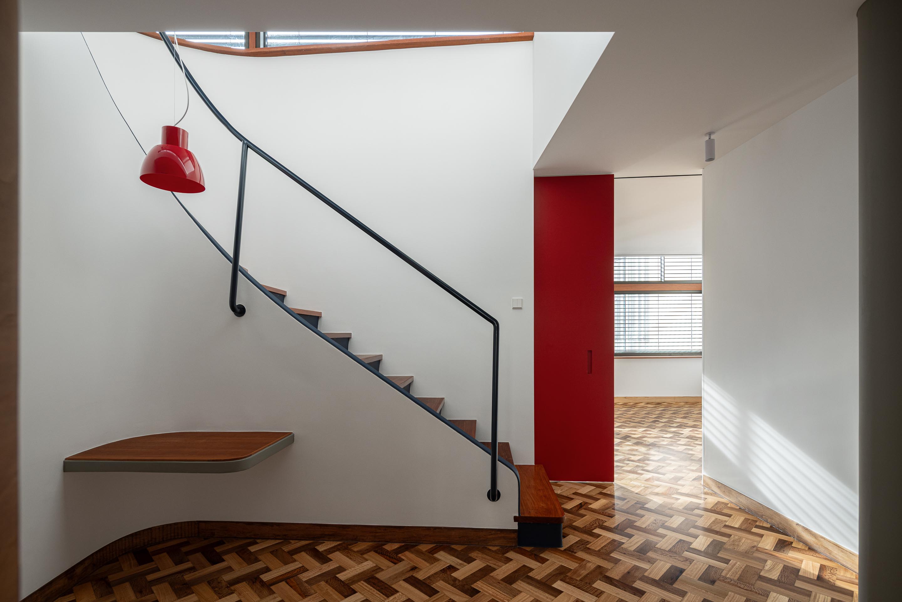 O projeto de reabilitação que desenvolvemos, passou por importantes fases de pesquisa, levantamento métrico e de diagnóstico das técnicas construtivas, de acabamentos e das infraestruturas, ao registo fotográfico do existente e a sondagens das diferentes camadas de pintura, para depois dar lugar à procura de soluções de resposta para o uso pretendido: uma habitação de uso permanente que respeite a identidade do edifício e que seja dotado de condições de conforto atuais.
