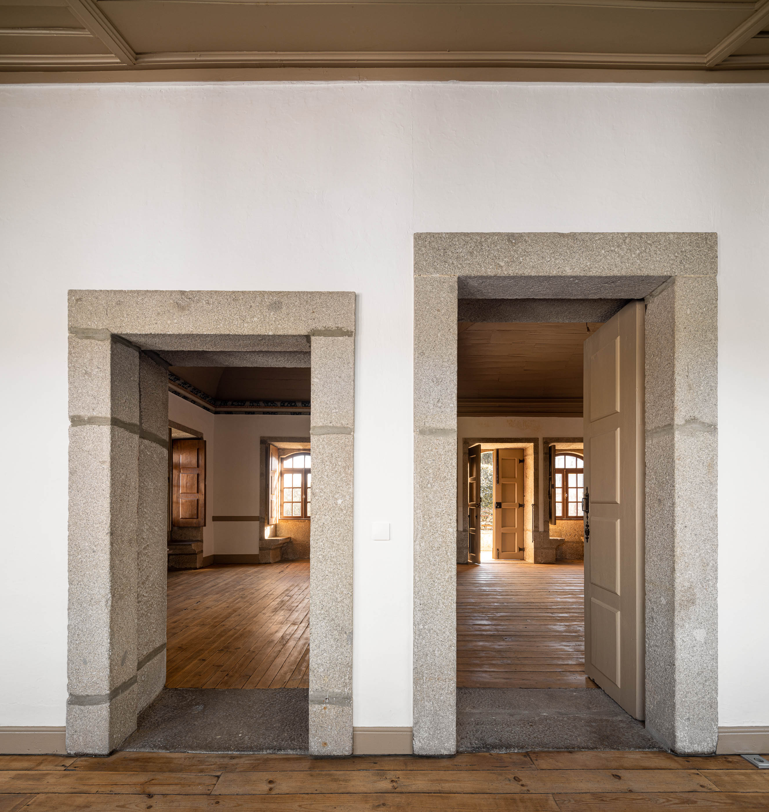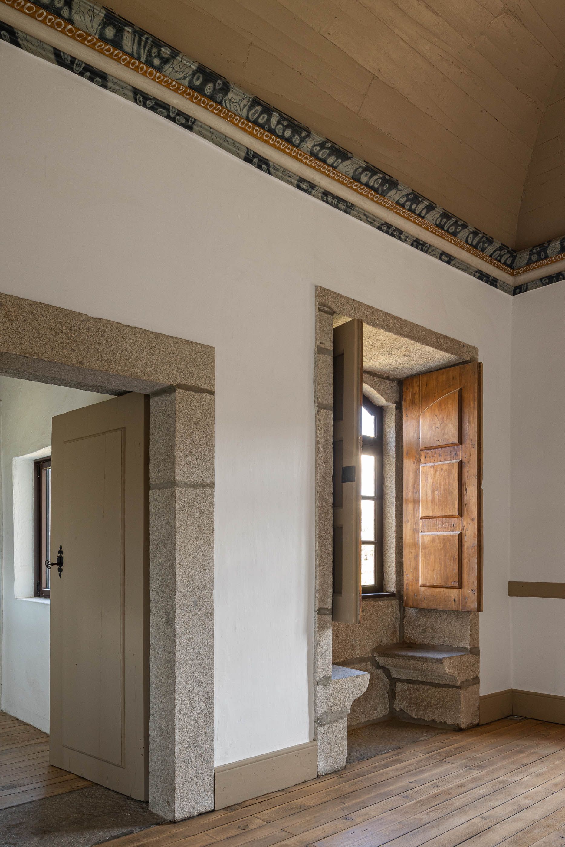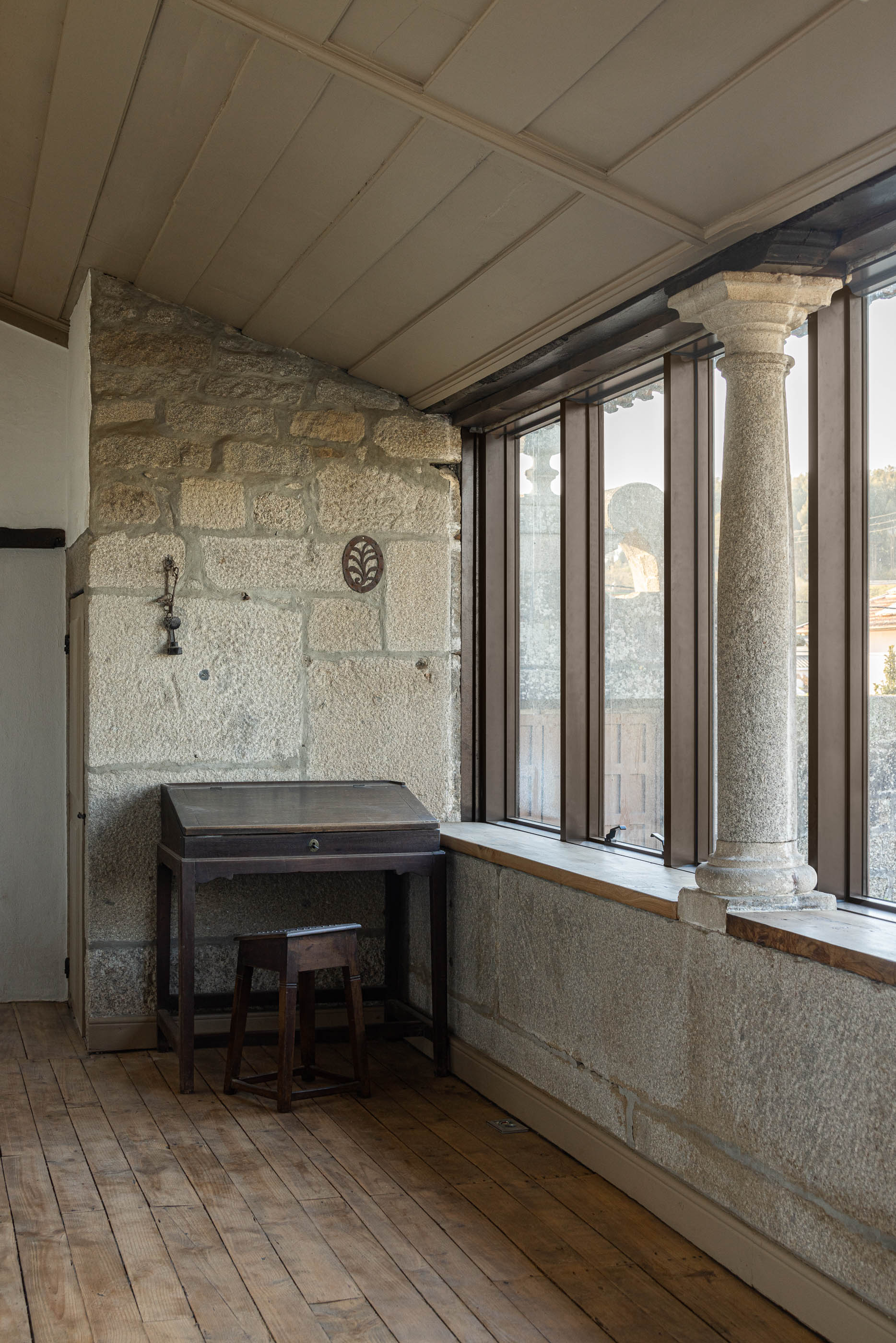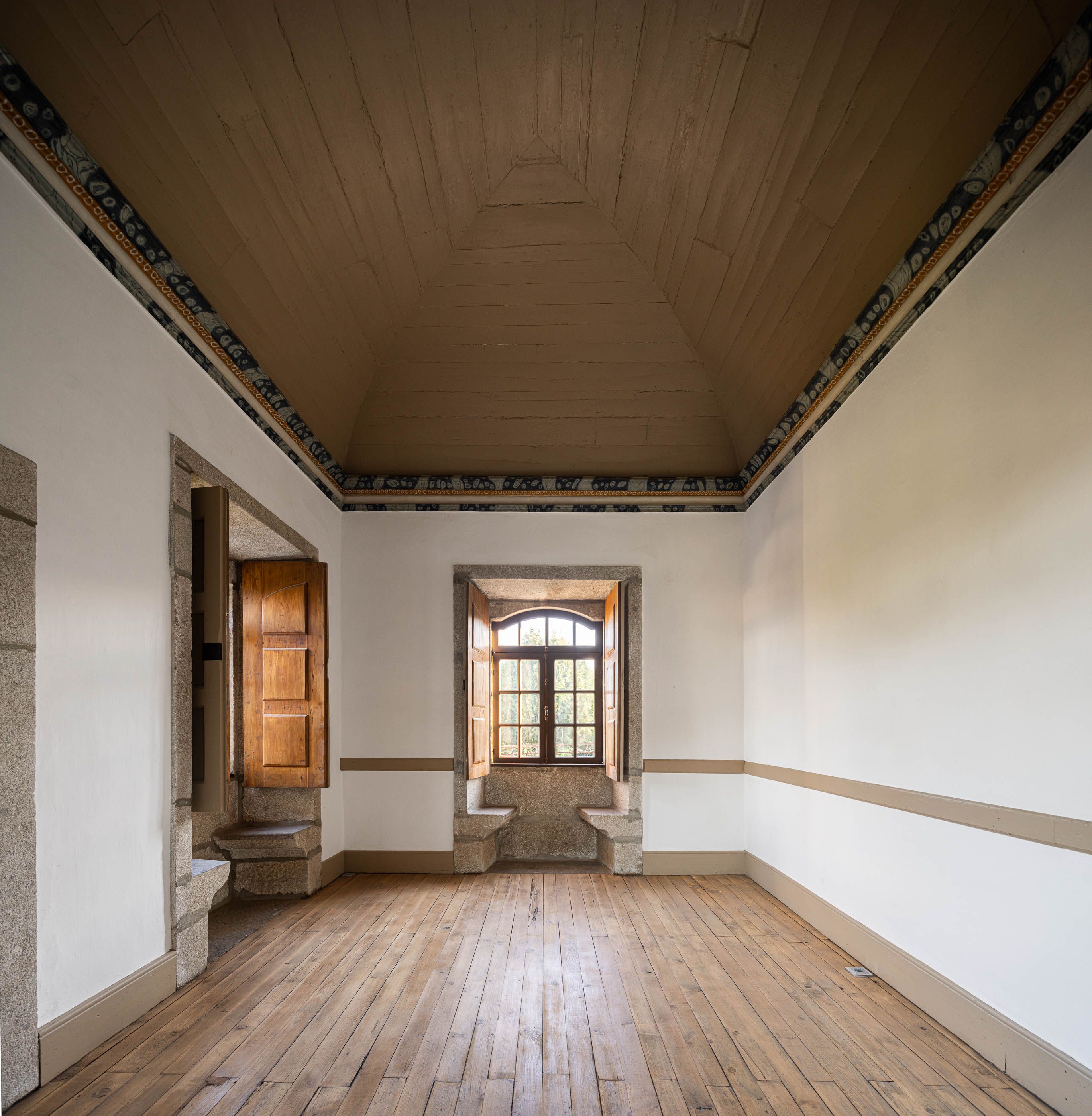Apesar do bom estado geral, a casa necessitava de melhorias no telhado e isolamento térmico, enquanto a capela apresentava maior degradação, especialmente no retábulo e na abóbada de taipa. O projeto de reabilitação priorizou a conservação dos elementos existentes, realizando intervenções pontuais nas madeiras e reforçando a estrutura dos pavimentos. Os soalhos foram isolados com lã mineral, garantindo maior conforto térmico. As infraestruturas elétricas foram discretamente instaladas sob os pavimentos e tetos, evitando impacto nas paredes.
