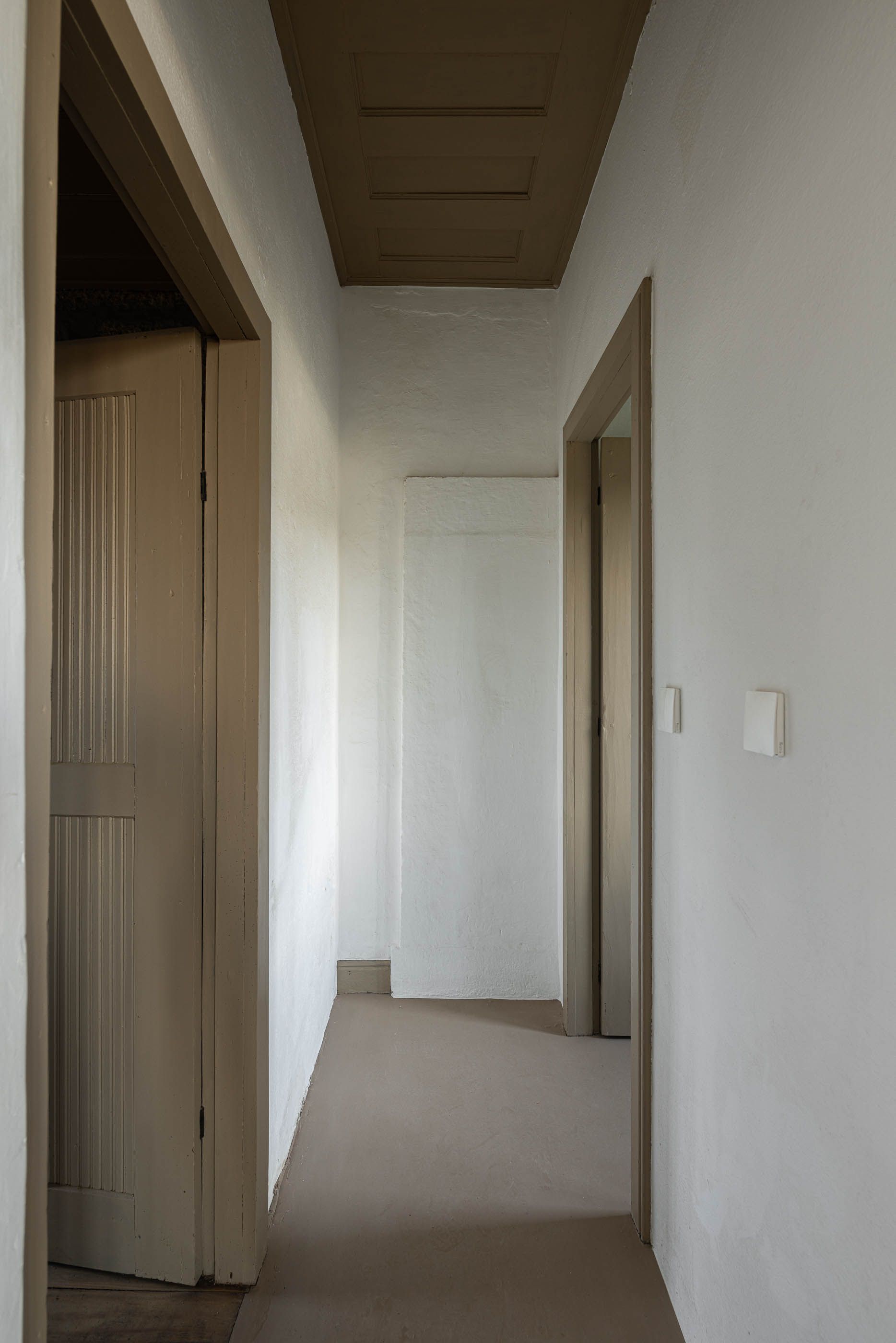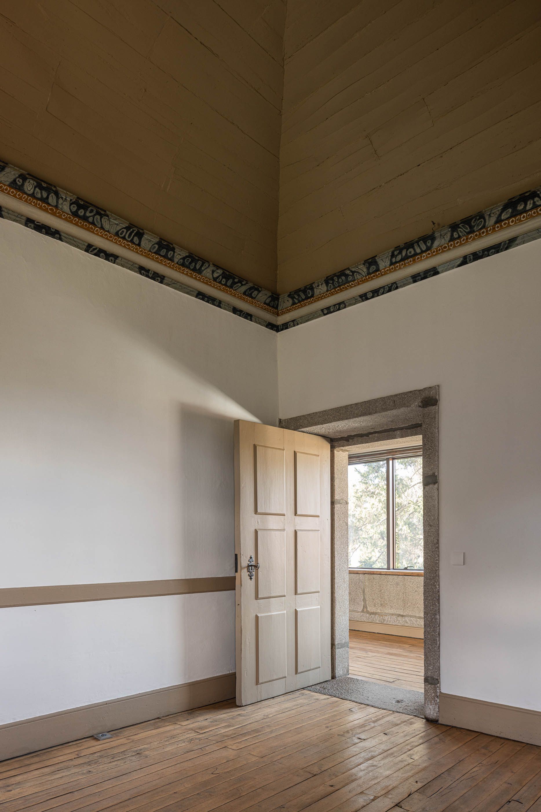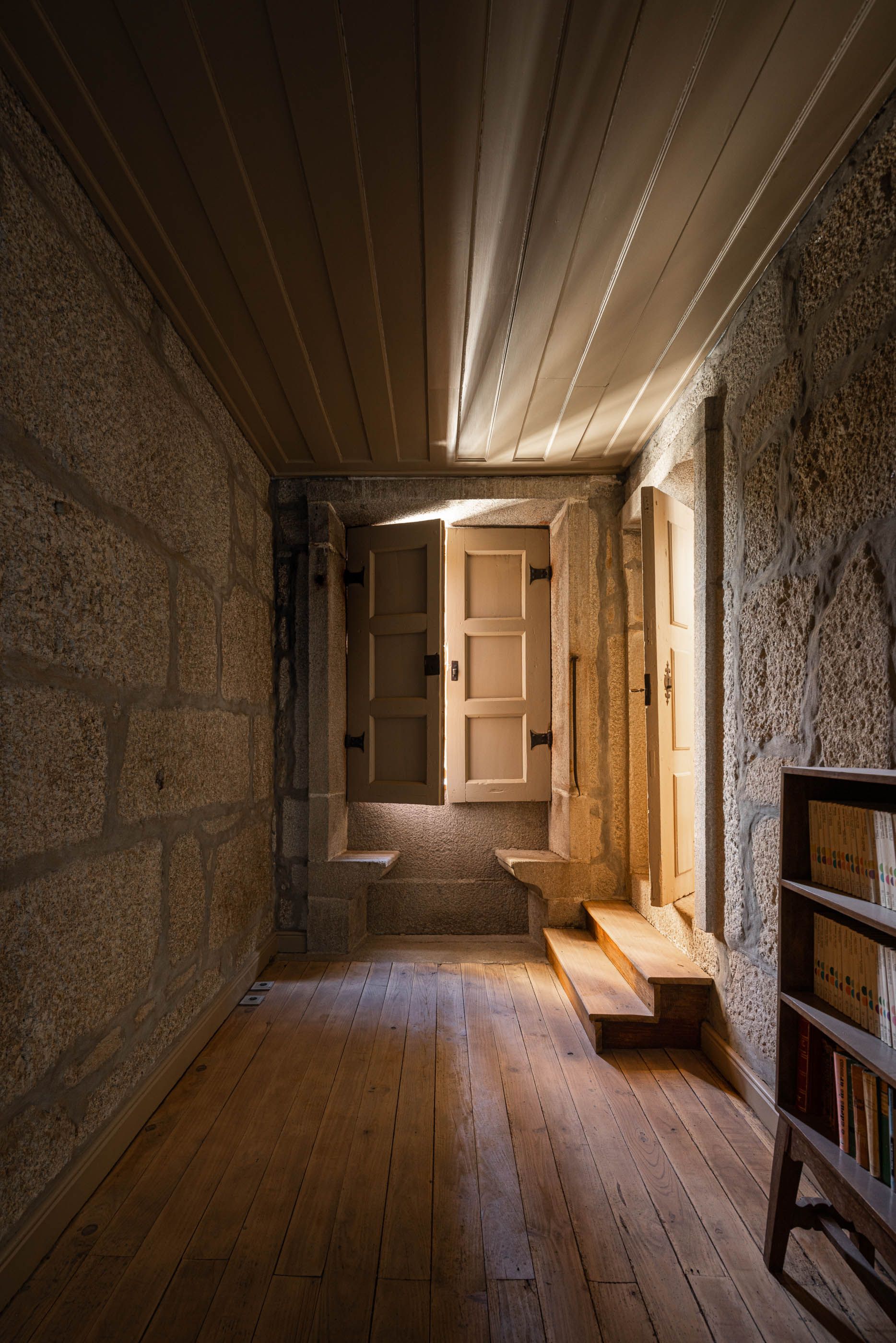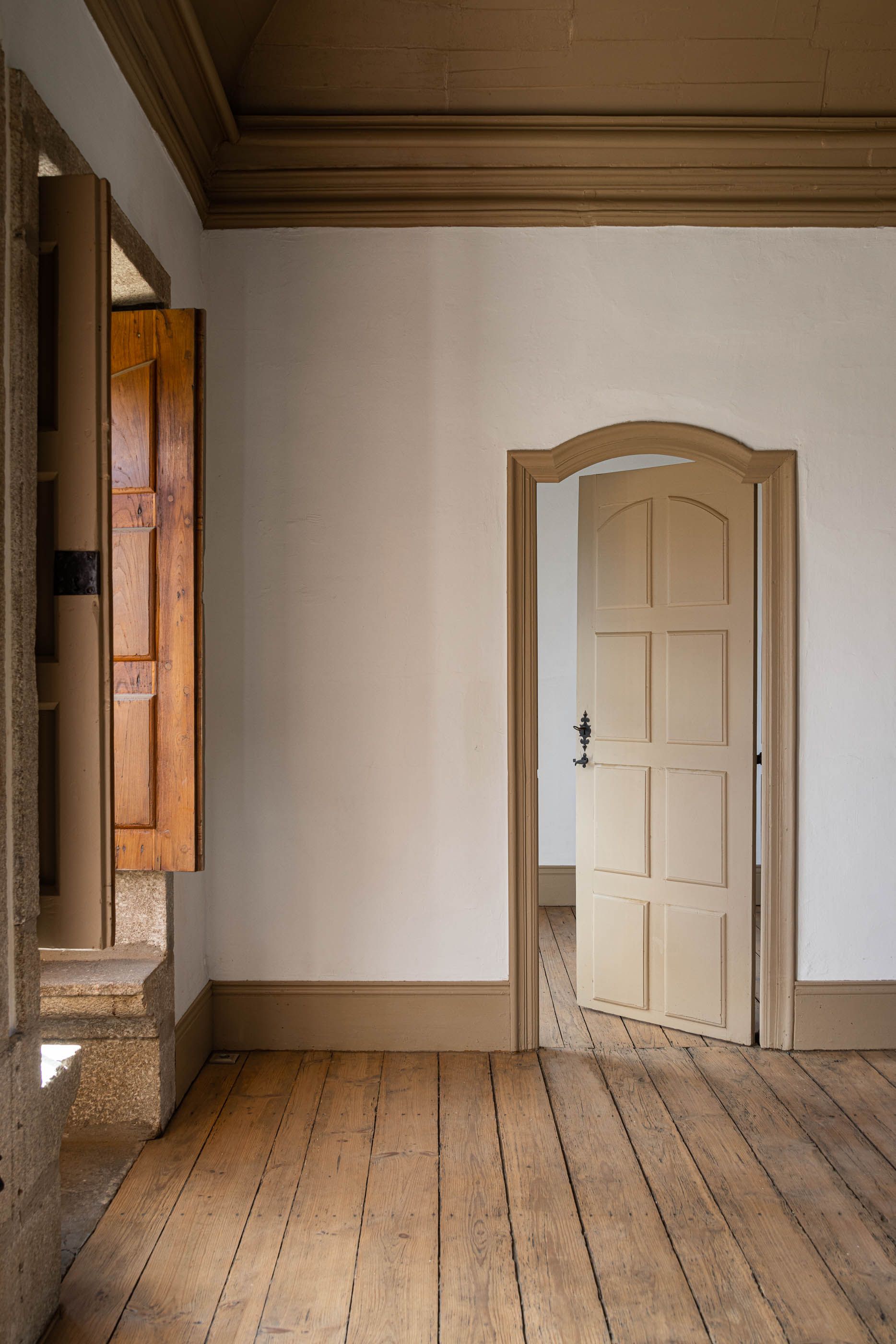 Apesar do bom estado geral, a casa necessitava de melhorias no telhado e isolamento térmico, enquanto a capela apresentava maior degradação, especialmente no retábulo e na abóbada de taipa. O projeto de reabilitação priorizou a conservação dos elementos existentes, realizando intervenções pontuais nas madeiras e reforçando a estrutura dos pavimentos. Os soalhos foram isolados com lã mineral, garantindo maior conforto térmico. As infraestruturas elétricas foram discretamente instaladas sob os pavimentos e tetos, evitando impacto nas paredes.
