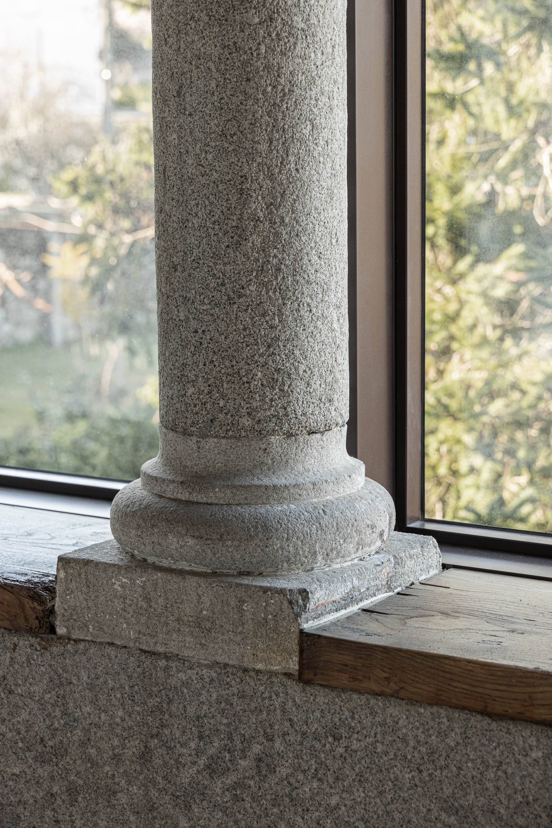 A remodelação incluiu a adaptação de um compartimento exterior para cozinha e casa de banho. No varandão nascente, a remoção de uma parede de tabique degradada restituiu a visibilidade das colunas de granito, sendo substituída por um grande envidraçado, mantendo o espaço fechado.