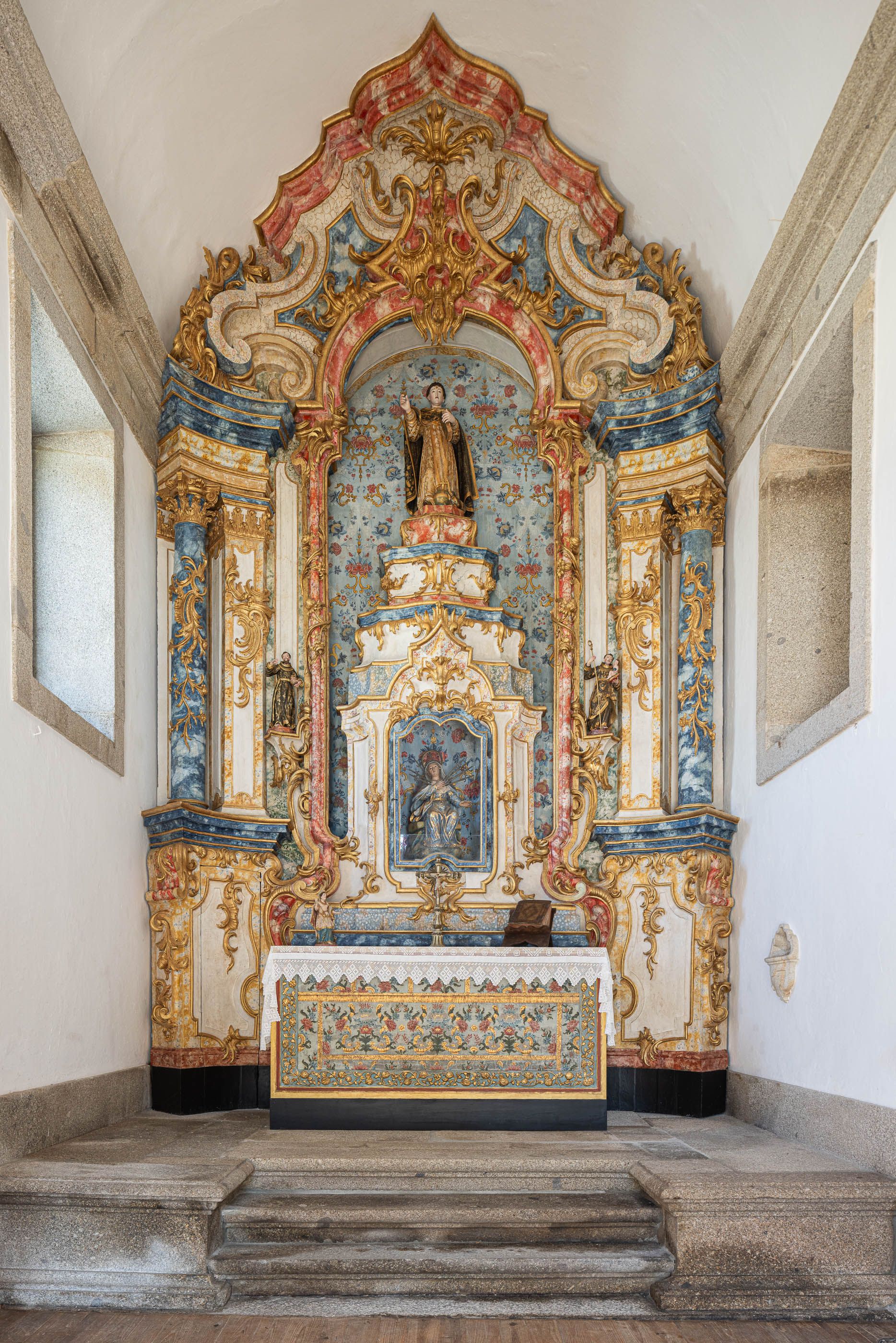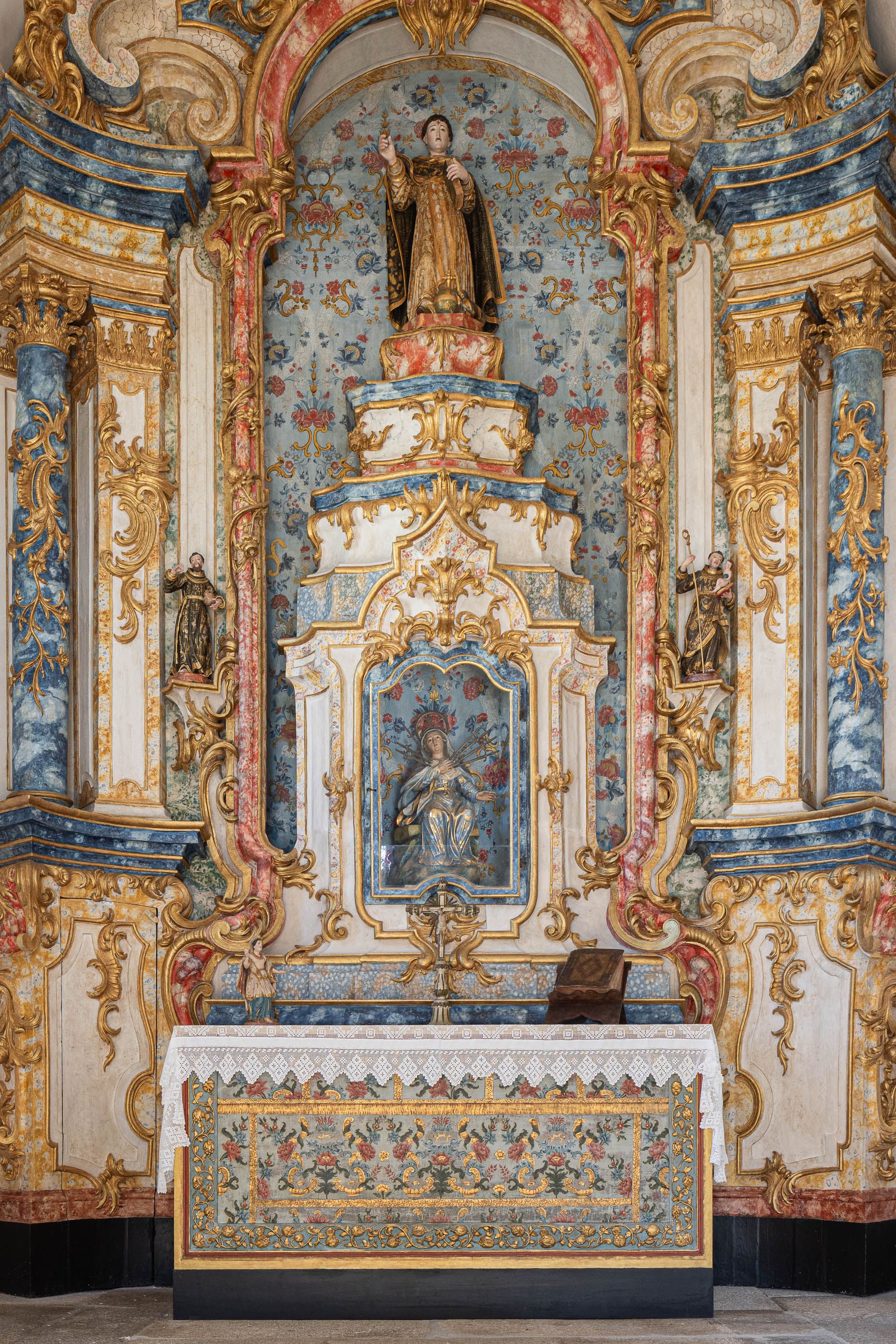O restauro do altar-mor seguiu um rigoroso processo de conservação, desde a fixação da folha de ouro e policromia à reestruturação do suporte lenhoso, desmontagem e intervenção em atelier. Após limpeza e reintegração cromática, o retábulo foi reinstalado na capela.